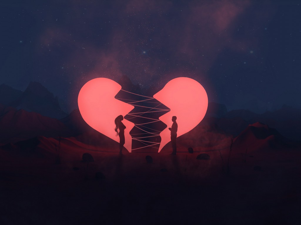 Couple Pink Heart Digital Art Wallpaper - 1024x768