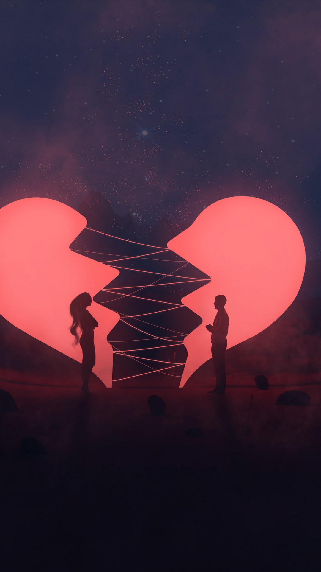Couple Pink Heart Digital Art Wallpaper - 1080x1920
