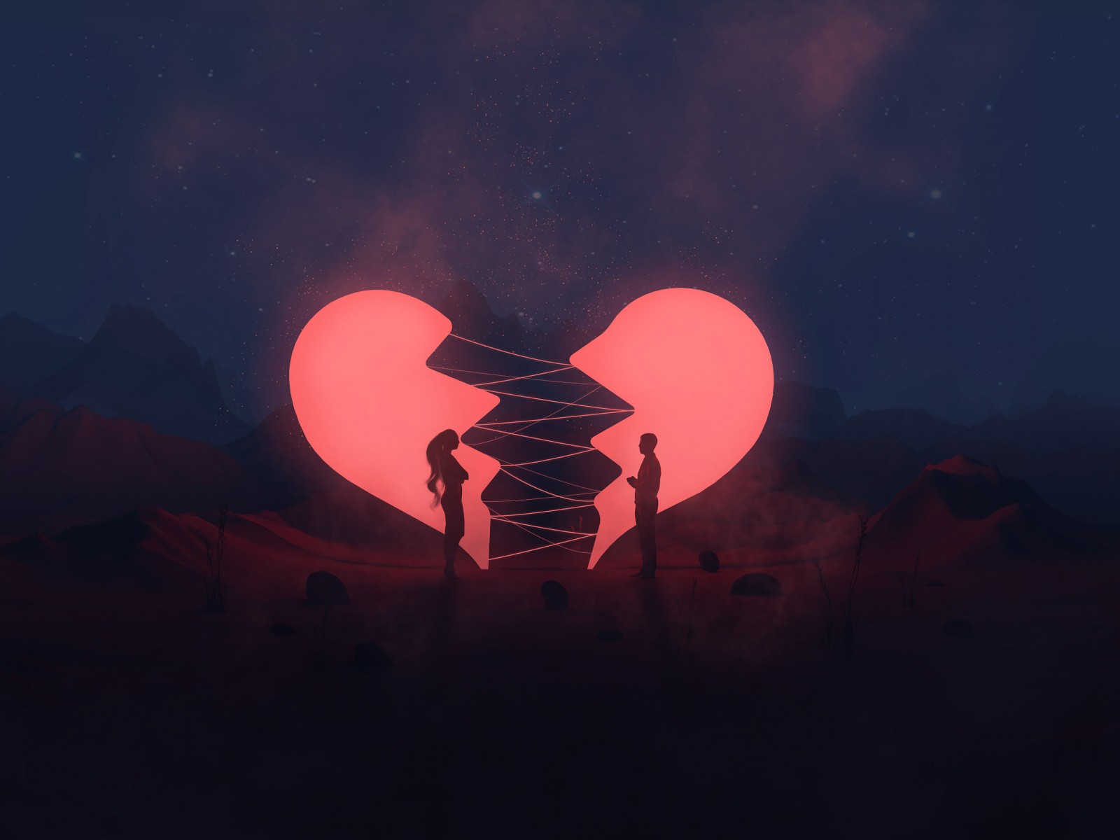 Couple Pink Heart Digital Art Wallpaper - 1600x1200