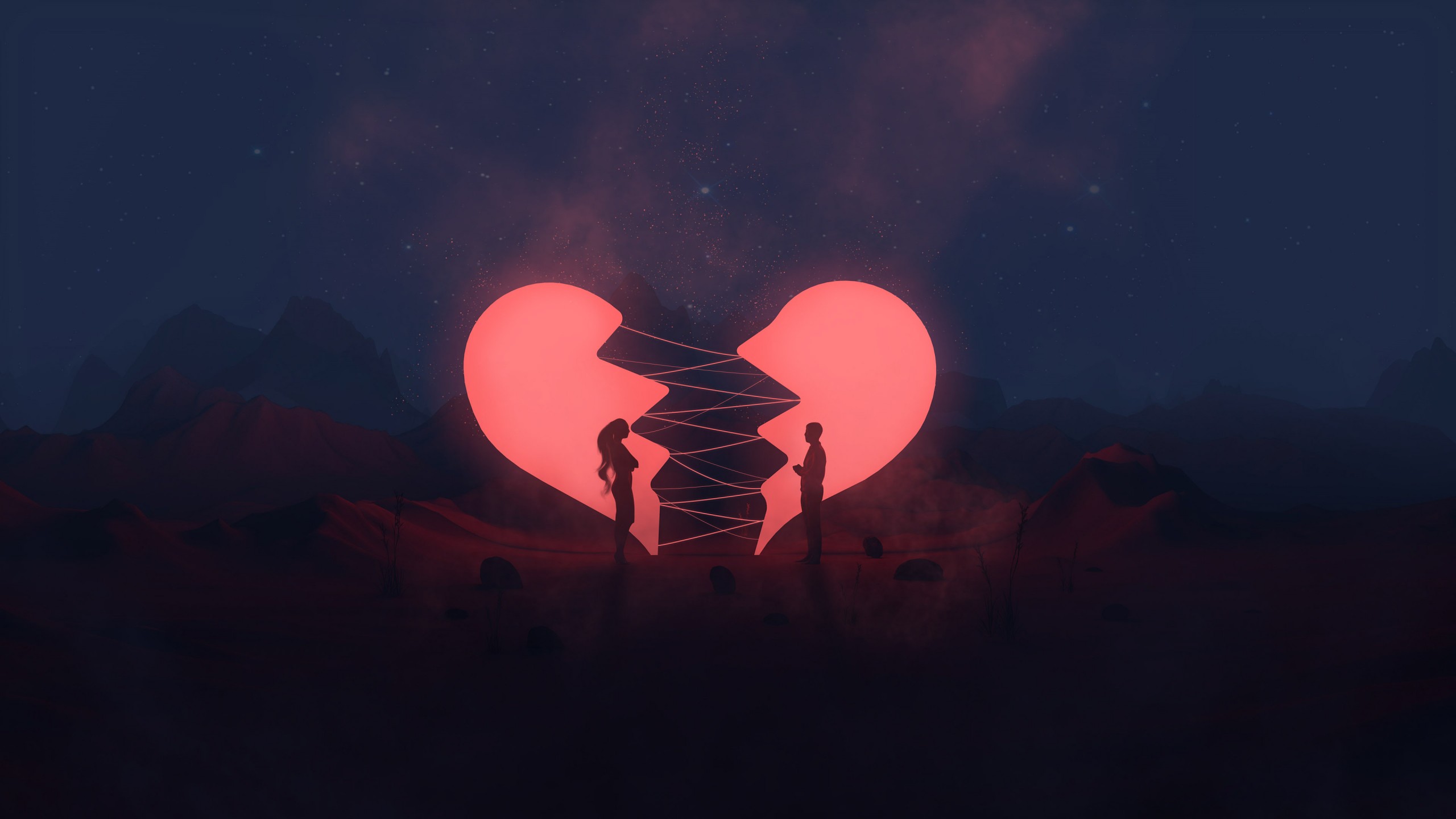 Couple Pink Heart Digital Art Wallpaper - 2560x1440
