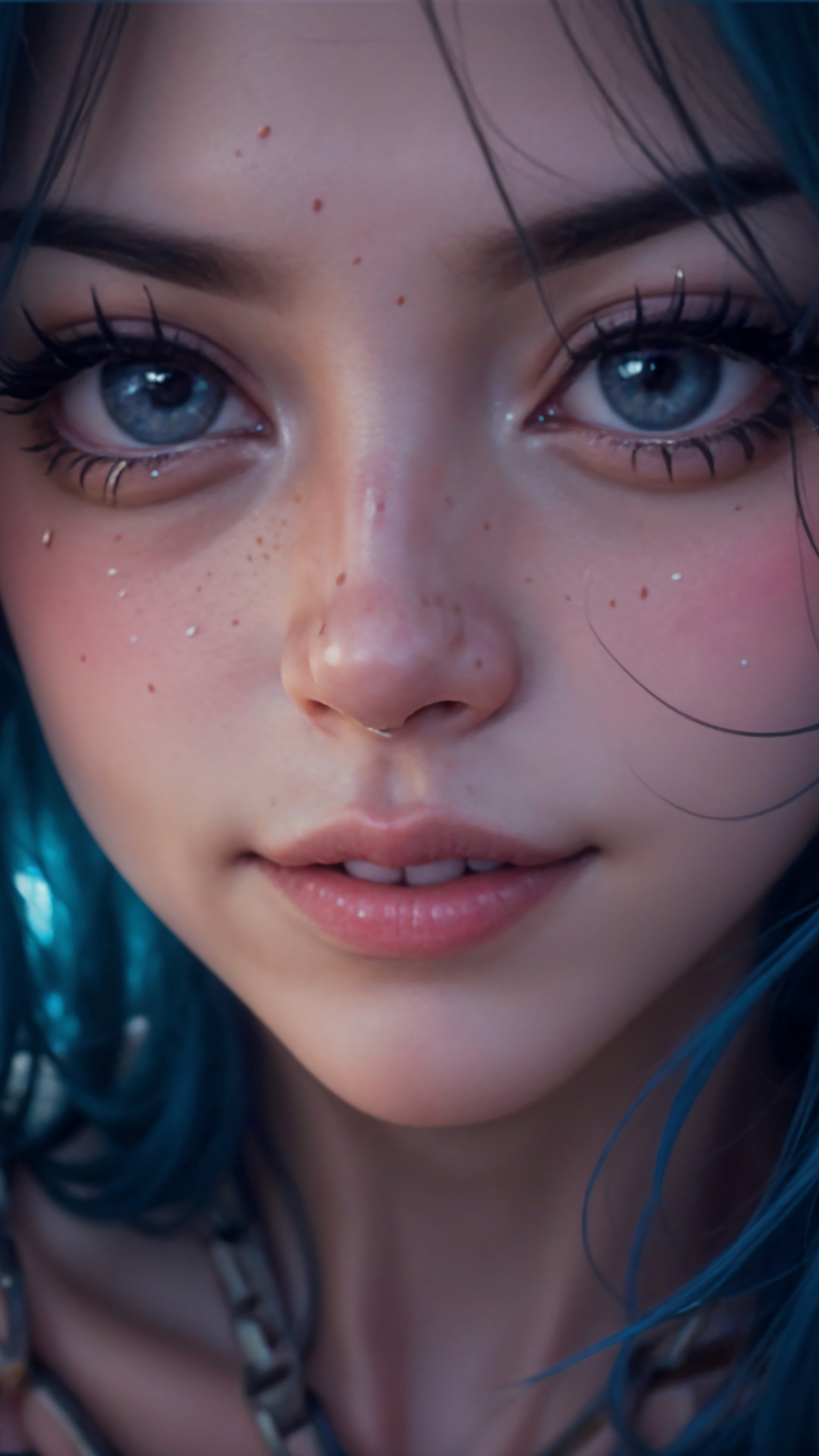 Cute Girl Blue Hair Tattoo Ai Art Wallpaper - 1080x1920
