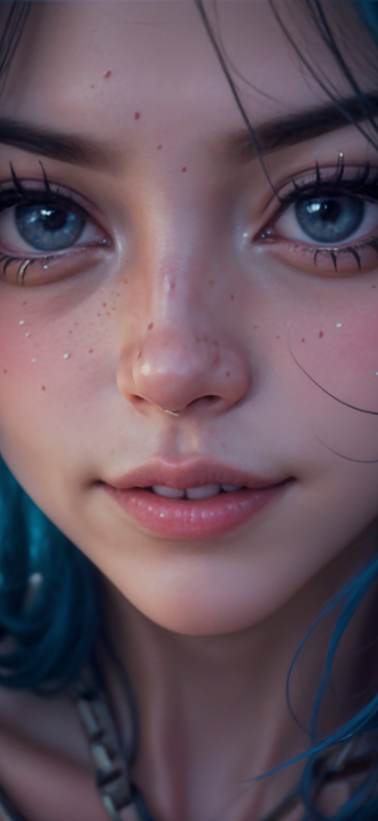 Cute Girl Blue Hair Tattoo Ai Art Wallpaper - 1290x2796