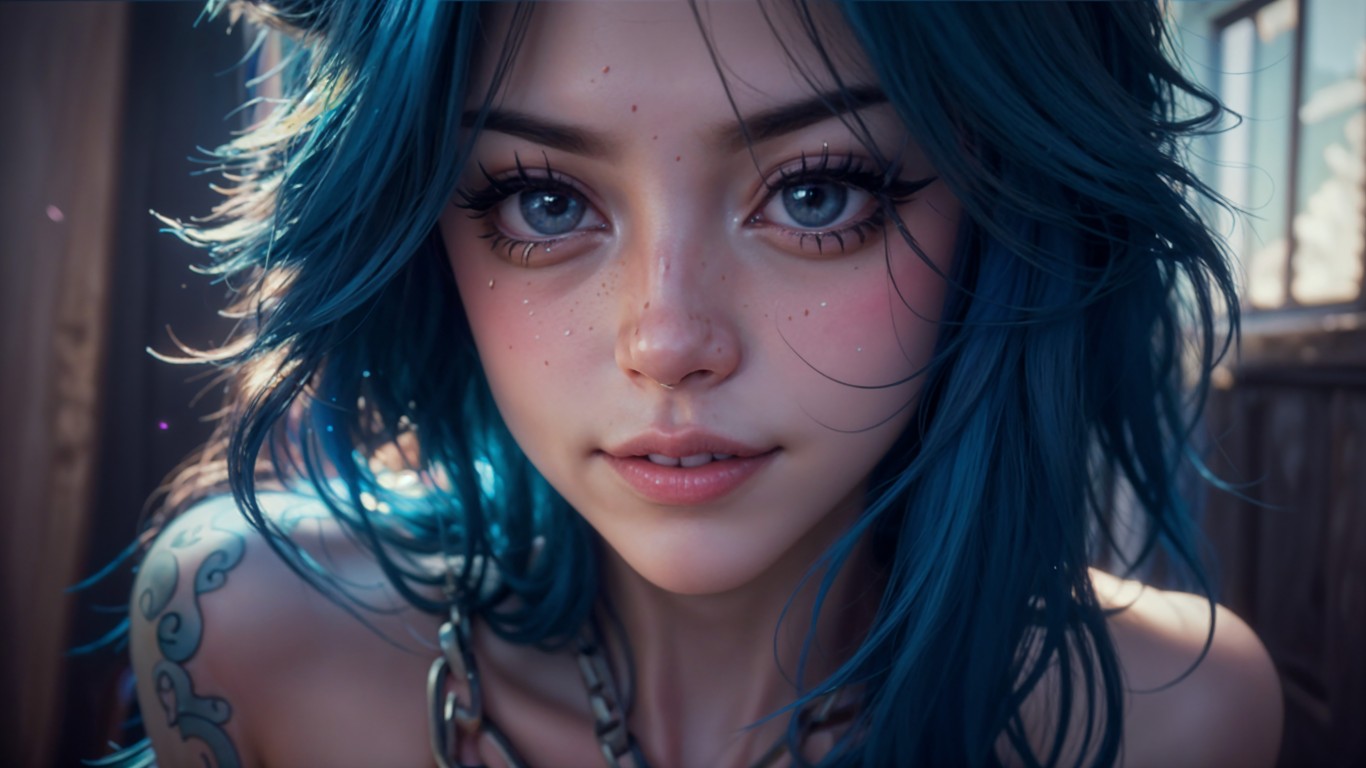 Cute Girl Blue Hair Tattoo Ai Art Wallpaper - 1366x768