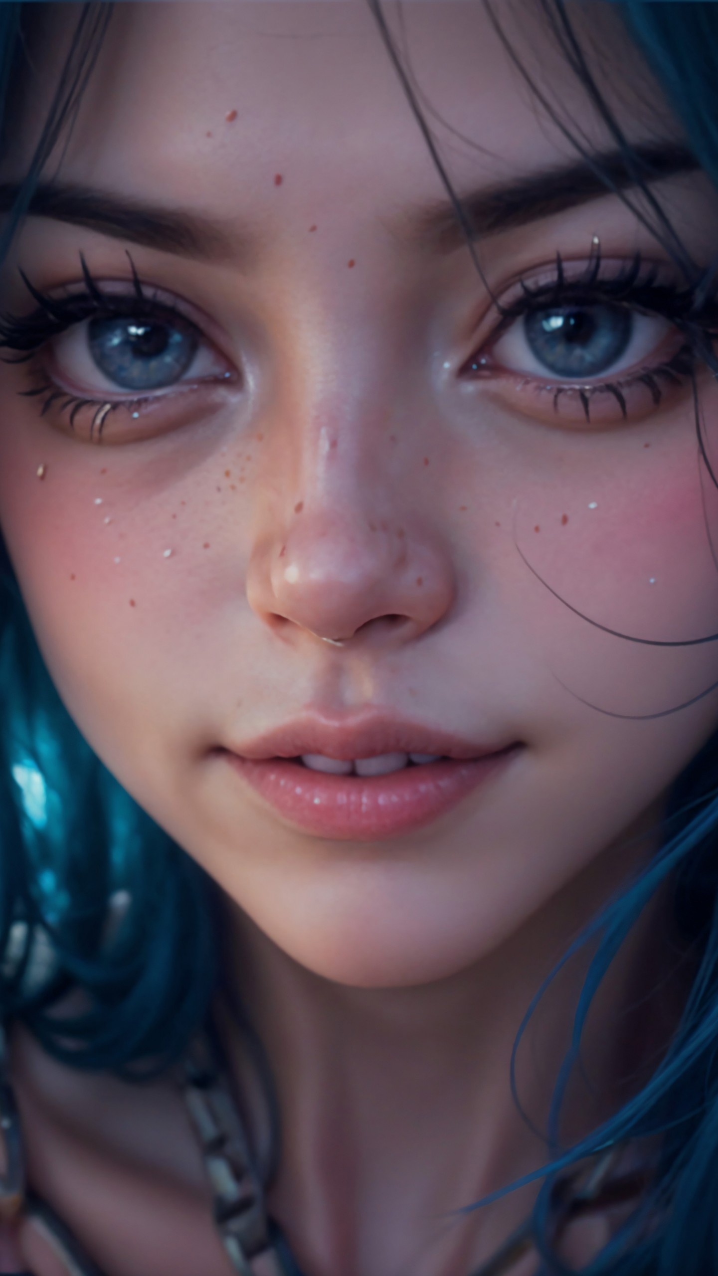 Cute Girl Blue Hair Tattoo Ai Art Wallpaper - 1440x2560