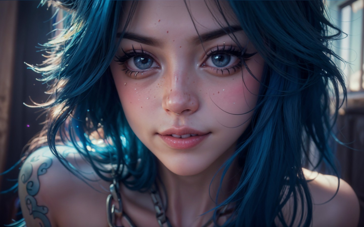 Cute Girl Blue Hair Tattoo Ai Art Wallpaper - 1440x900