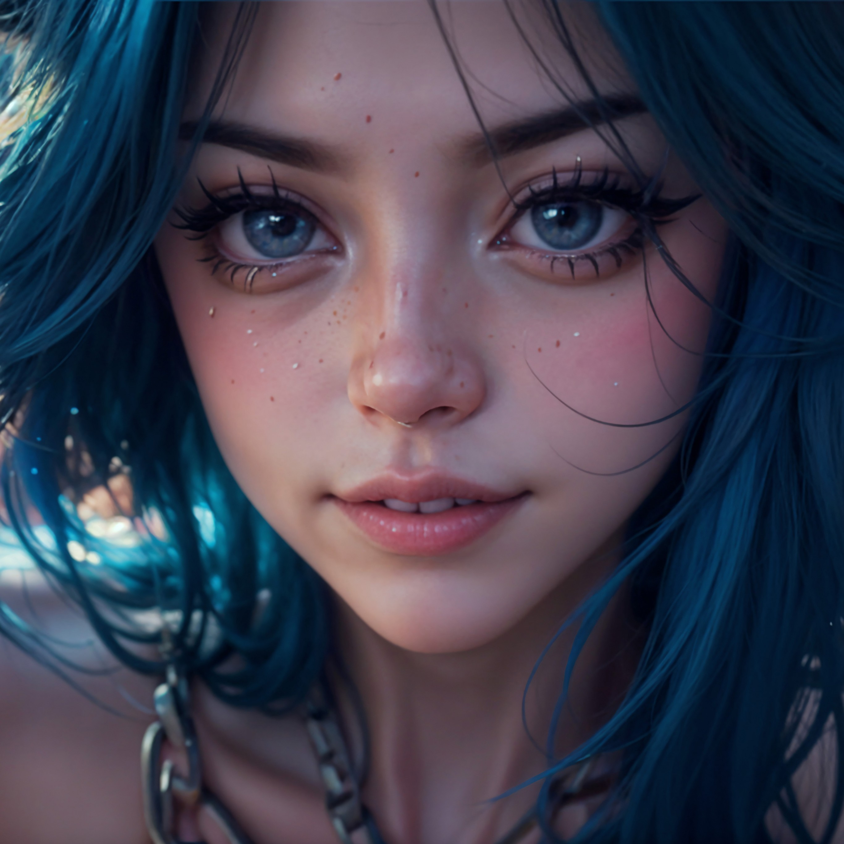 Cute Girl Blue Hair Tattoo Ai Art Wallpaper - 2732x2732
