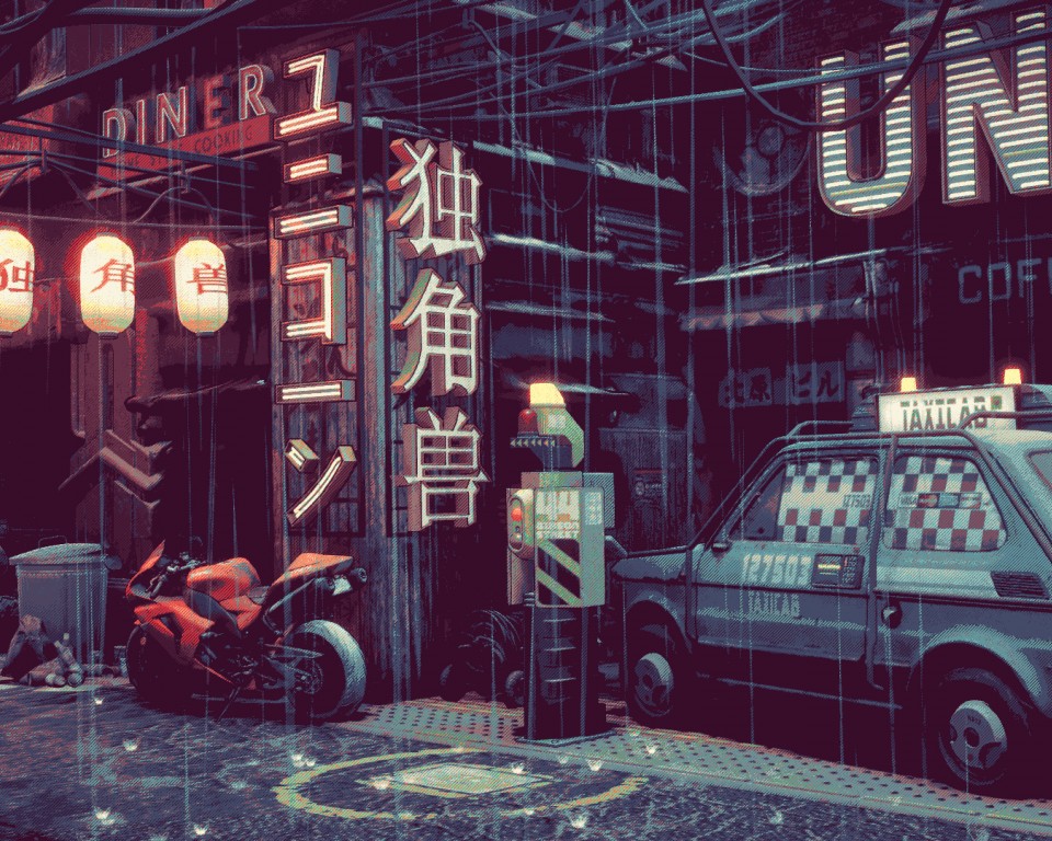 Cyberpunk Blade Runner Car Rain Art Wallpaper - 960x768