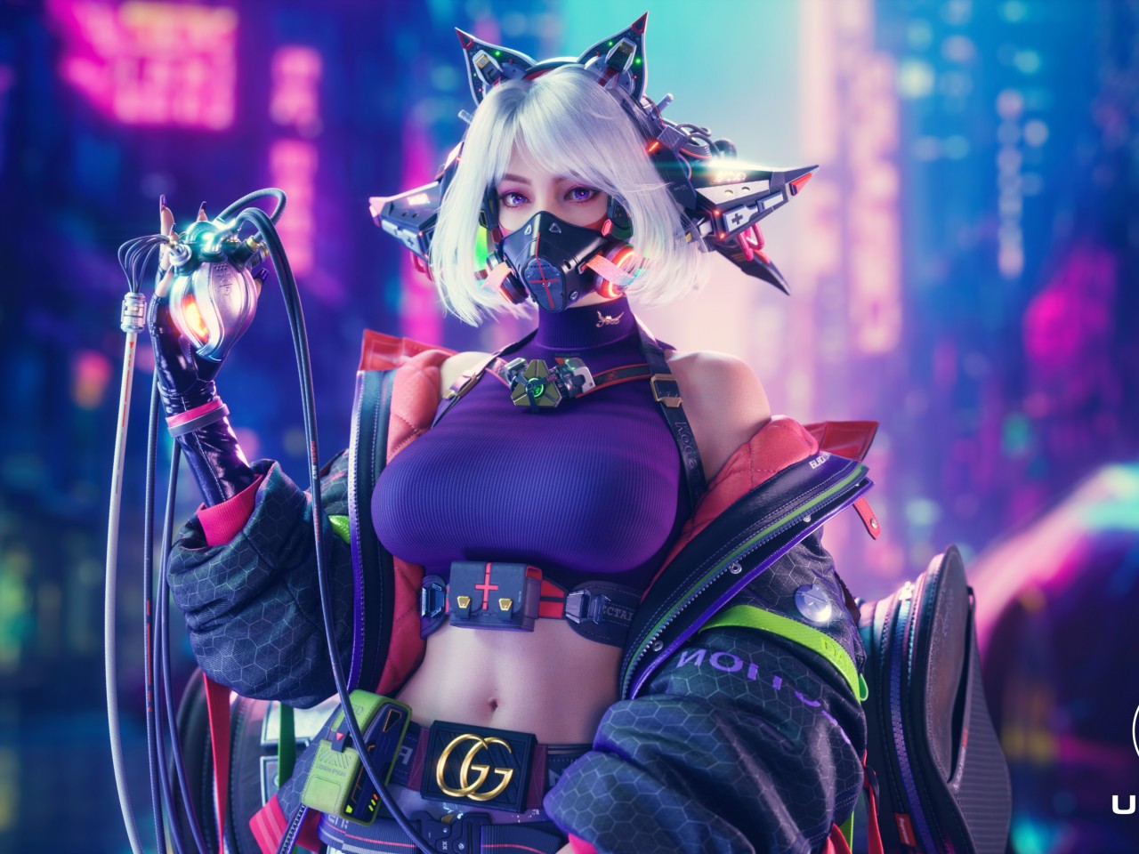 Cyberpunk Women Mask Heart UE5 Wallpaper - 1280x960