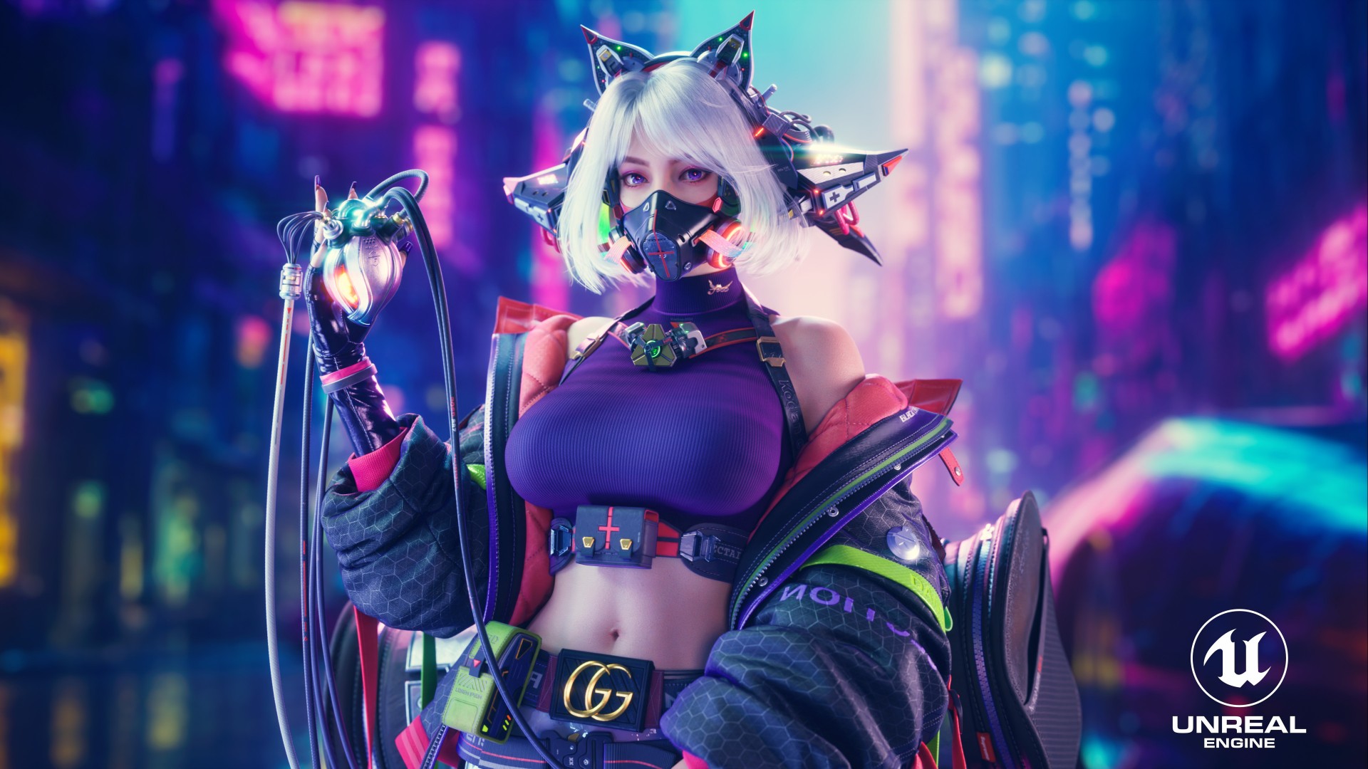 Cyberpunk Women Mask Heart UE5 Wallpaper - 1920x1080
