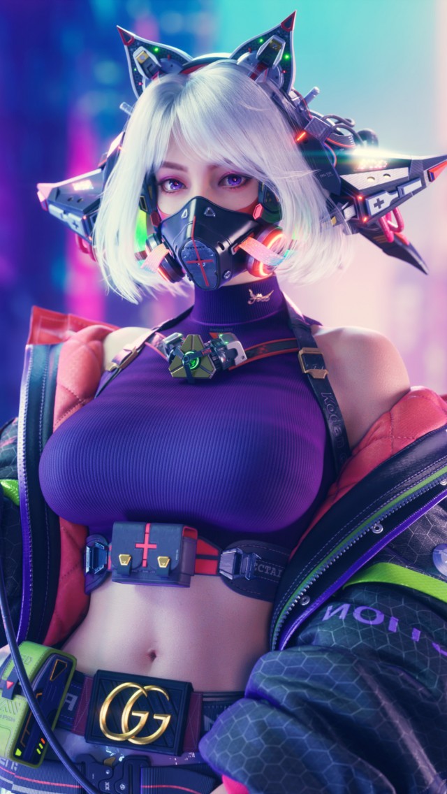 Cyberpunk Women Mask Heart UE5 Wallpaper - 640x1136