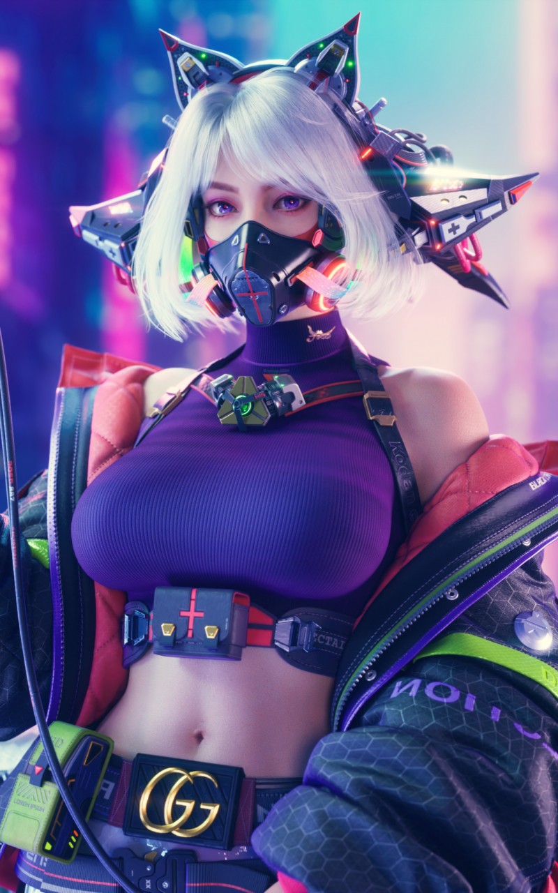 Cyberpunk Women Mask Heart UE5 Wallpaper - 800x1280