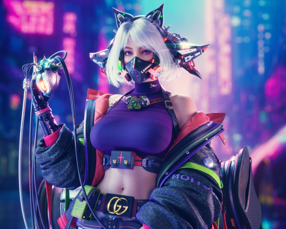 Cyberpunk Women Mask Heart UE5 Wallpaper - 960x768