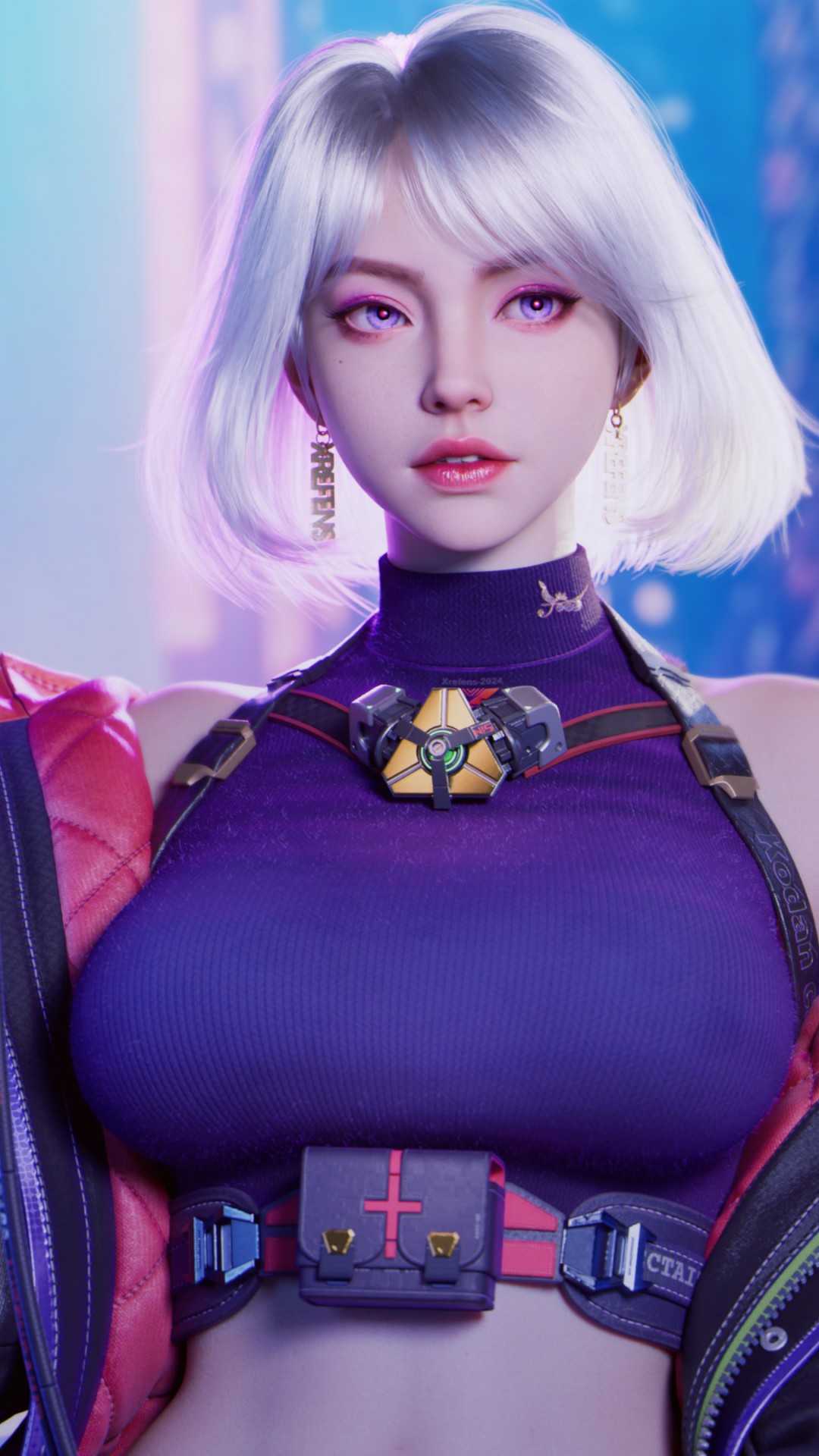 Cyberpunk Women Silver Hair Heart Wallpaper - 1080x1920