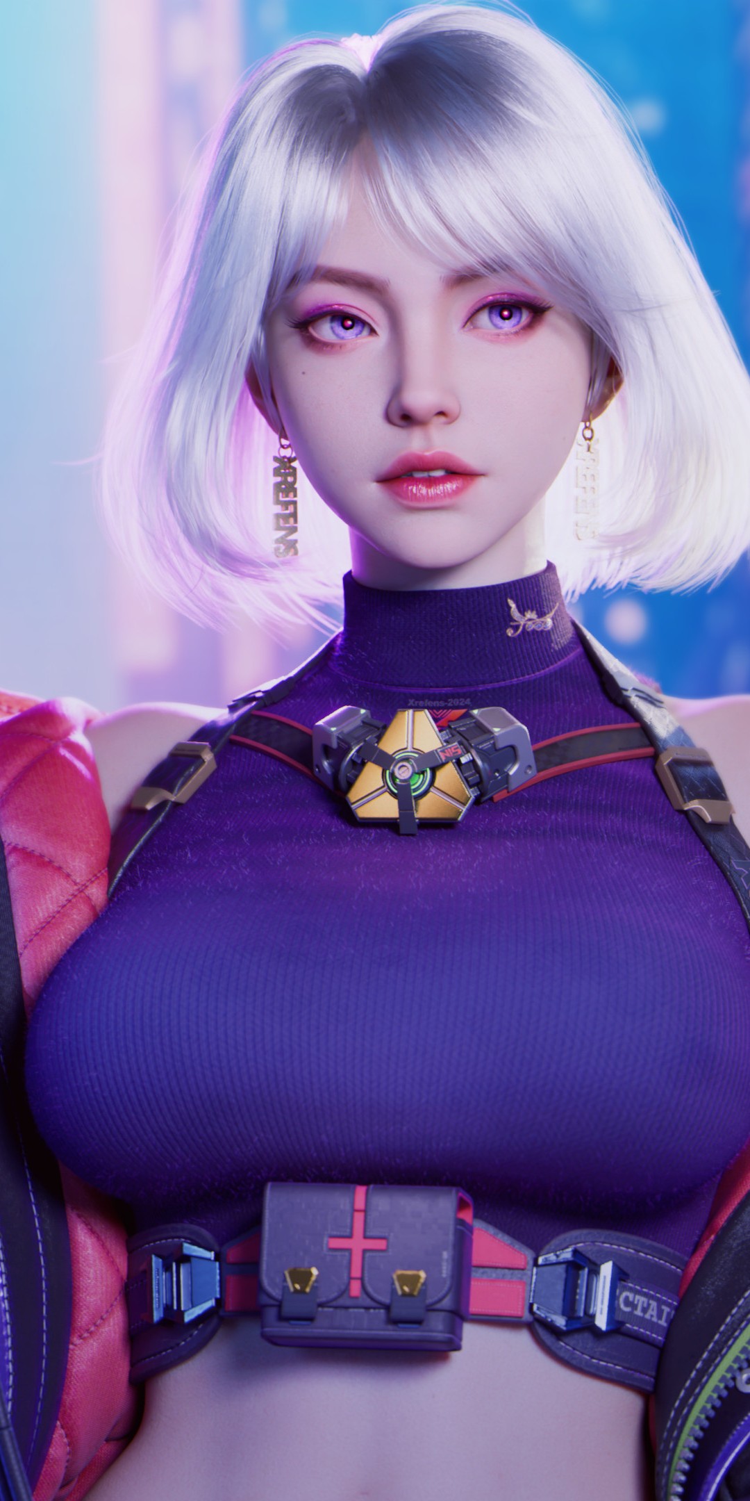 Cyberpunk Women Silver Hair Heart Wallpaper - 1080x2160