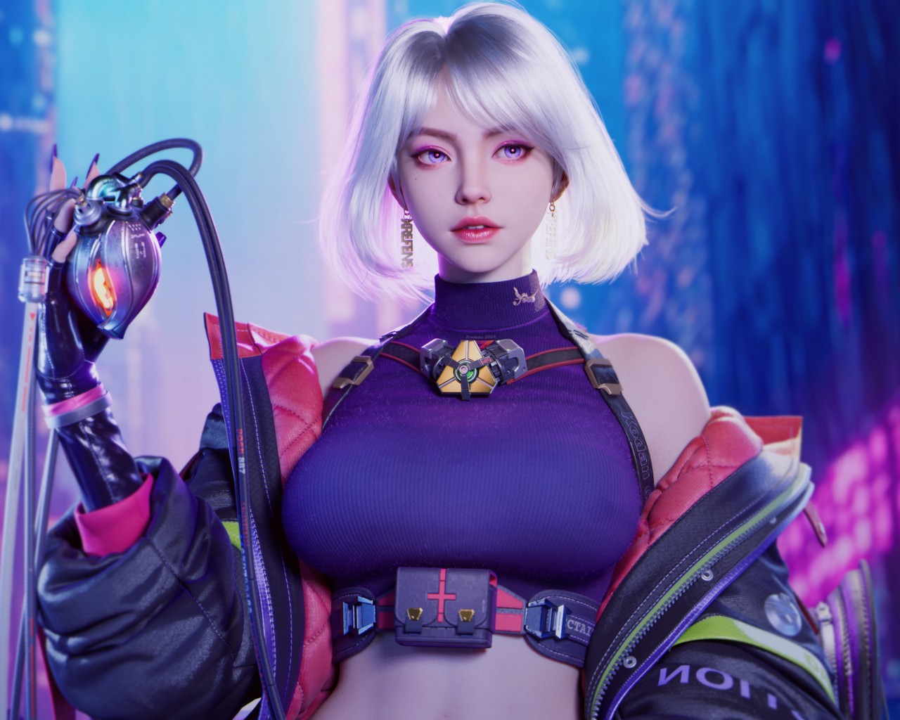 Cyberpunk Women Silver Hair Heart Wallpaper - 1280x1024