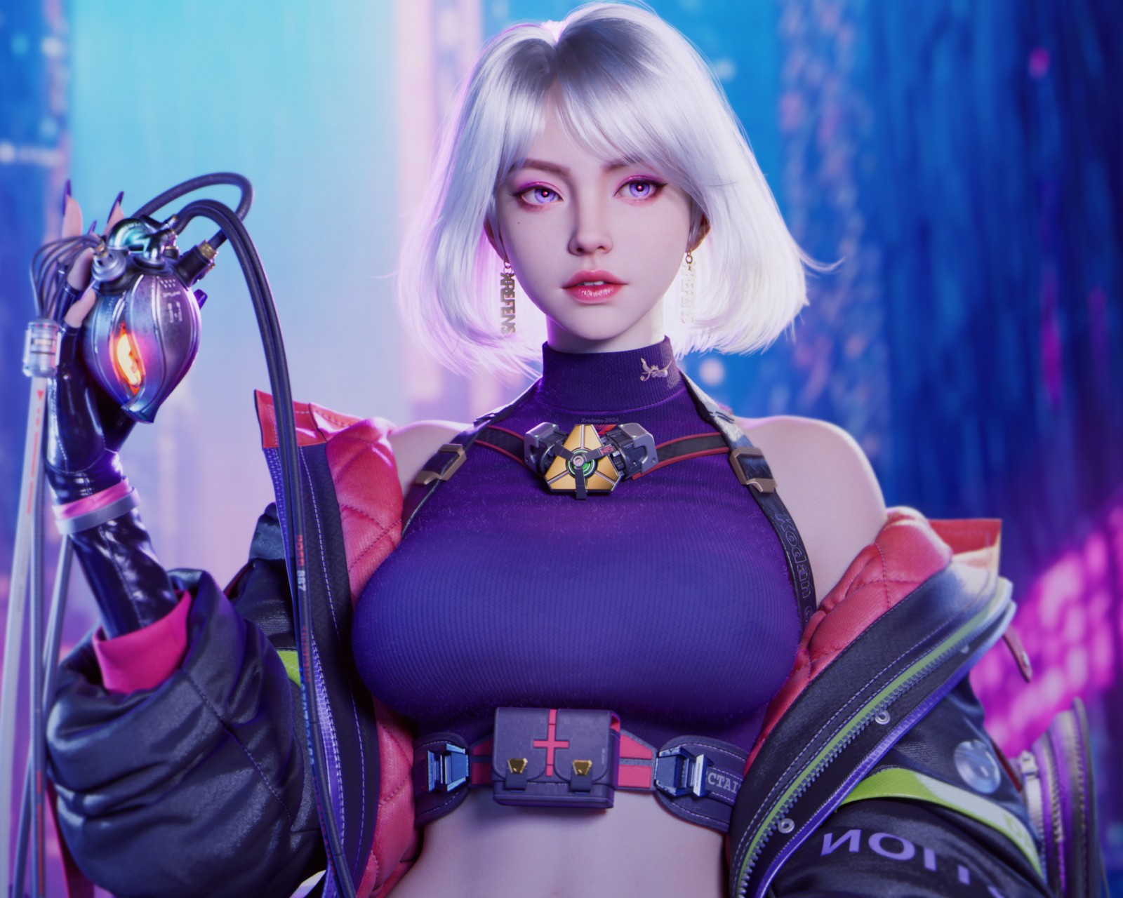Cyberpunk Women Silver Hair Heart Wallpaper - 1600x1280