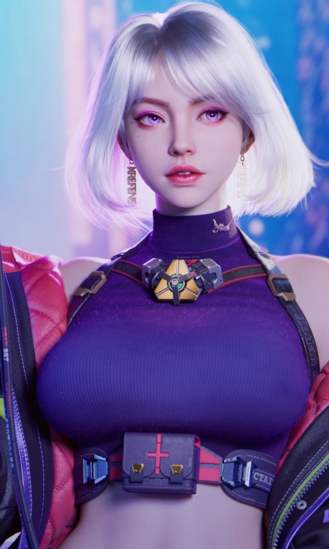 Cyberpunk Women Silver Hair Heart Wallpaper - 480x800