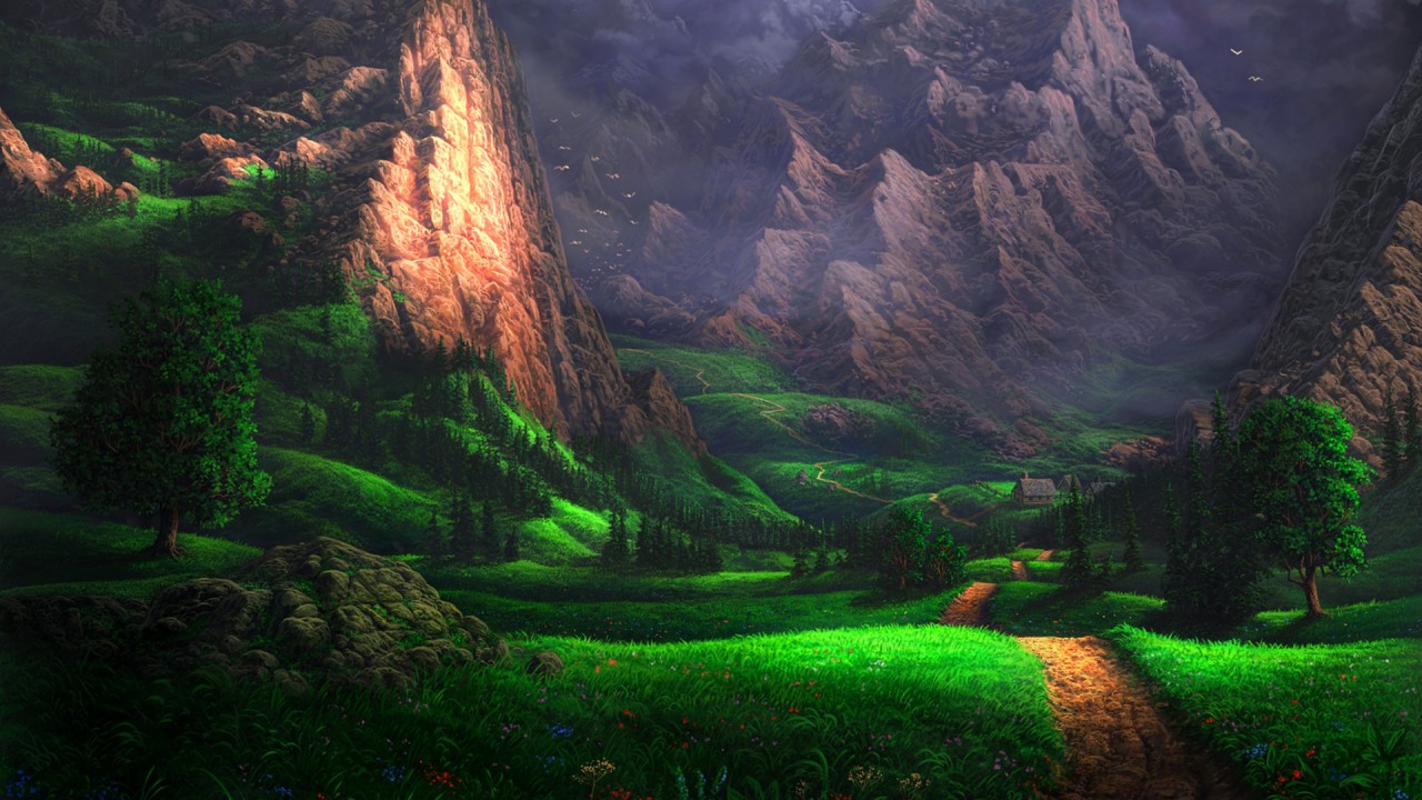 Digital Art Path Road Mountains Wallpaper - 1280x720