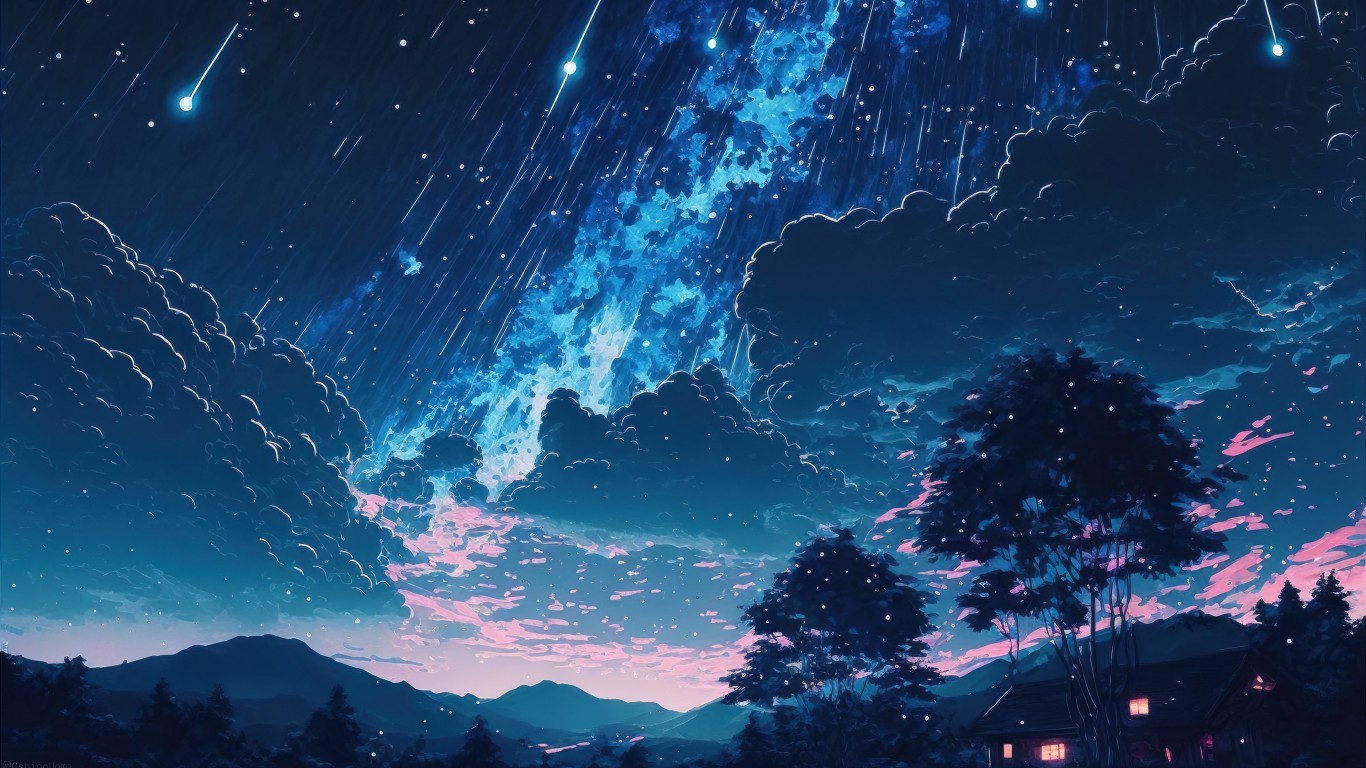 Endless Rain Starry Sky Art Scenery Wallpaper - 1366x768