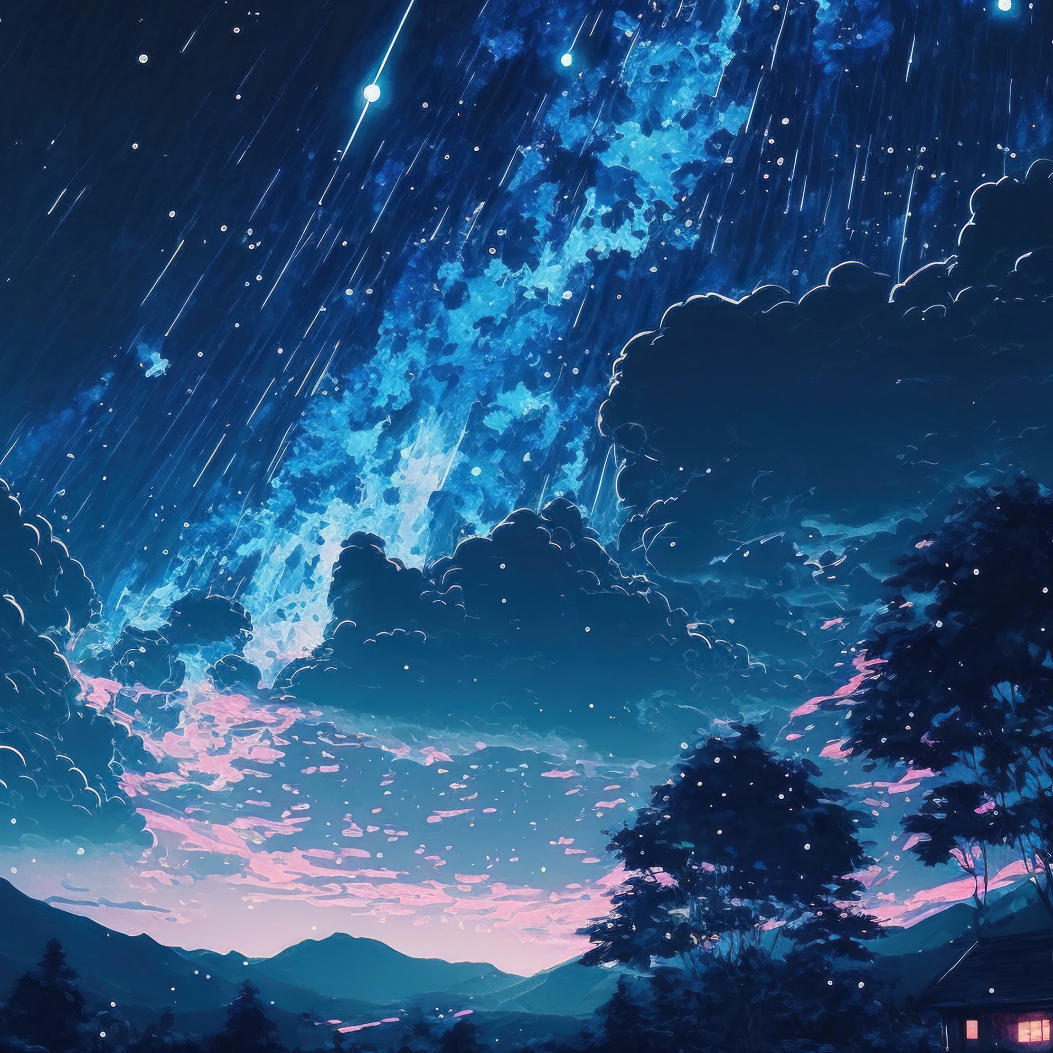 Endless Rain Starry Sky Art Scenery Wallpaper - 2048x2048