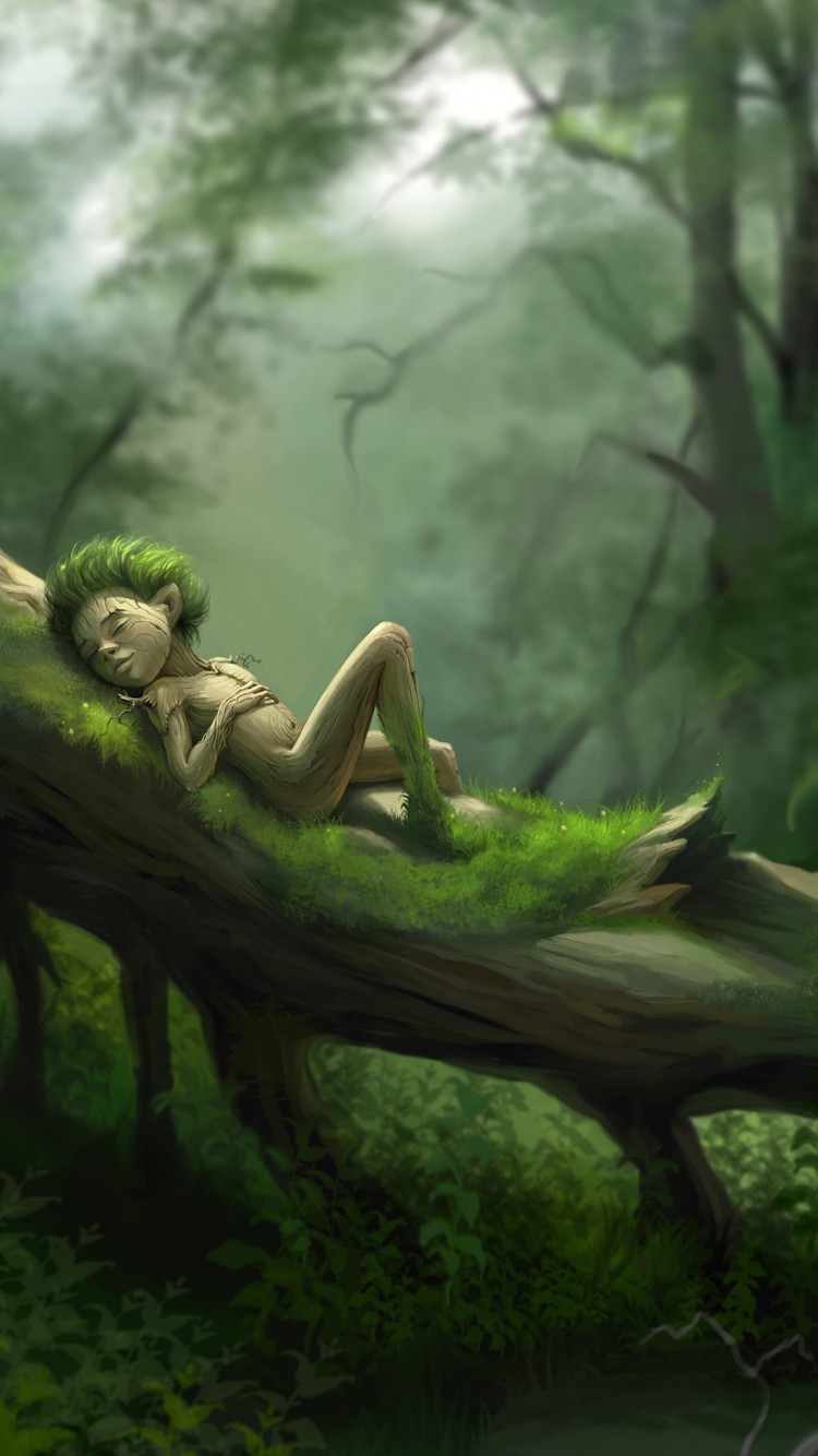Forest Sleep Green Tree Wallpaper - 750x1334