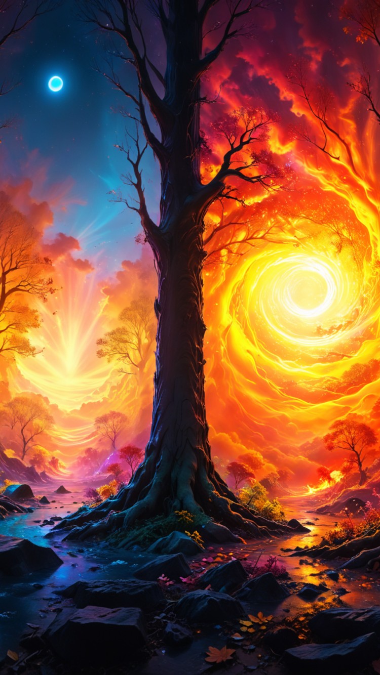 Four Seasons Trees Vibrant Ai Art Wallpaper - 750x1334