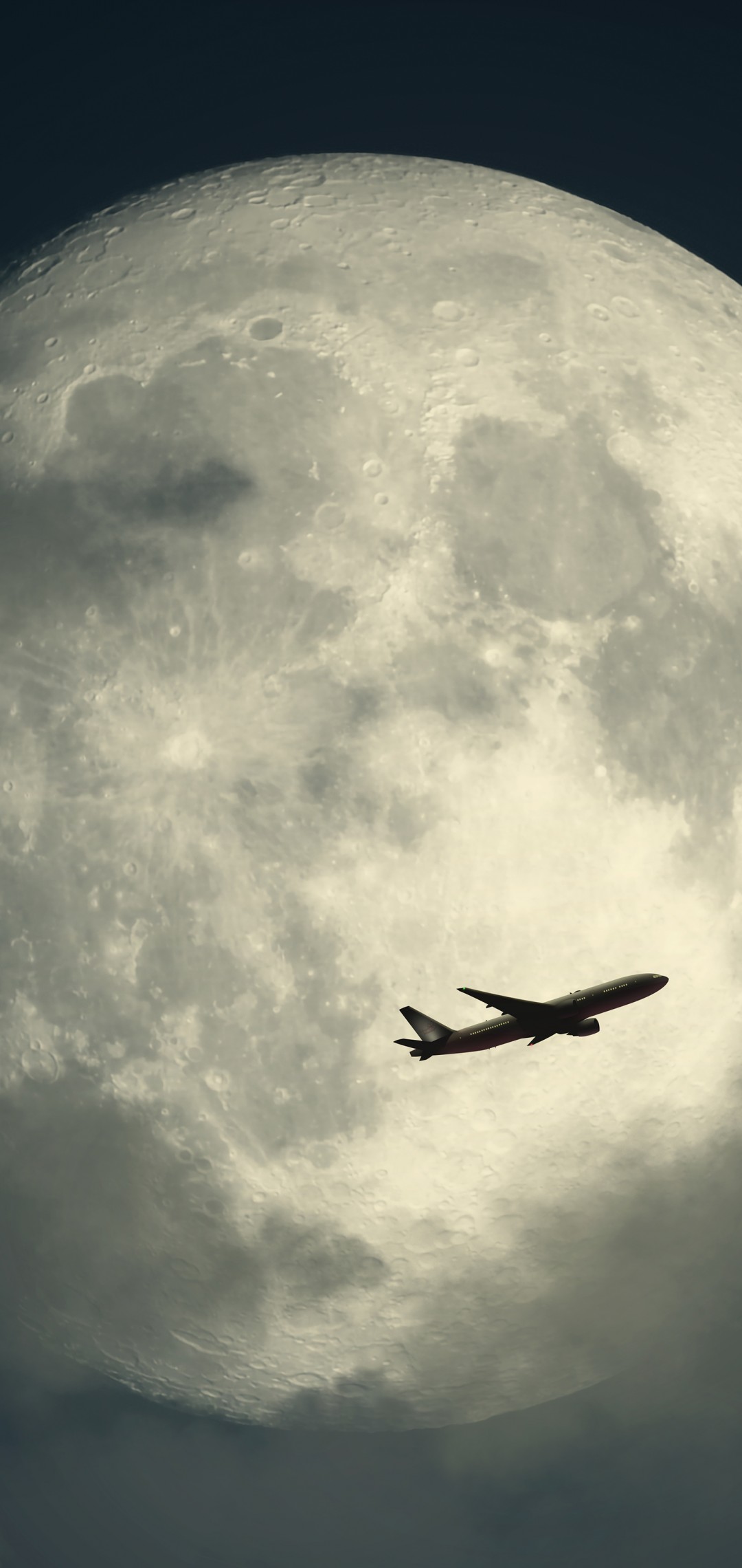 Full Moon Airplane Clouds Night Sky Wallpaper - 1080x2280