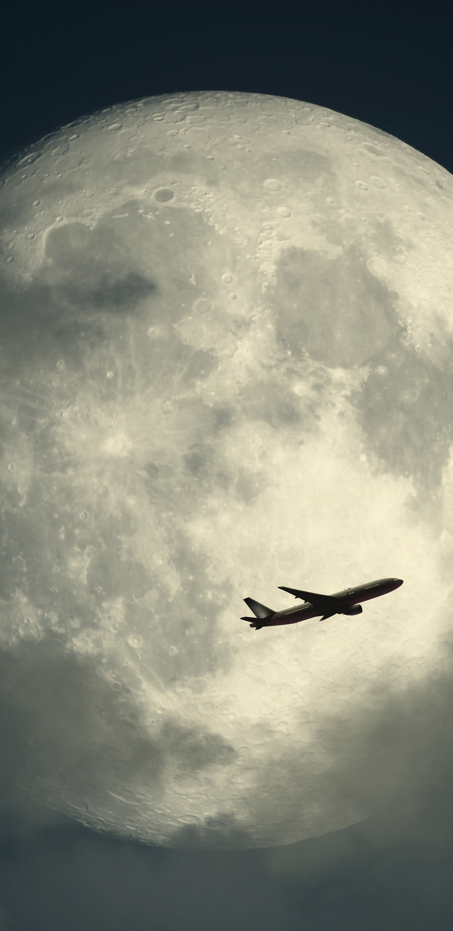 Full Moon Airplane Clouds Night Sky Wallpaper - 1440x2960