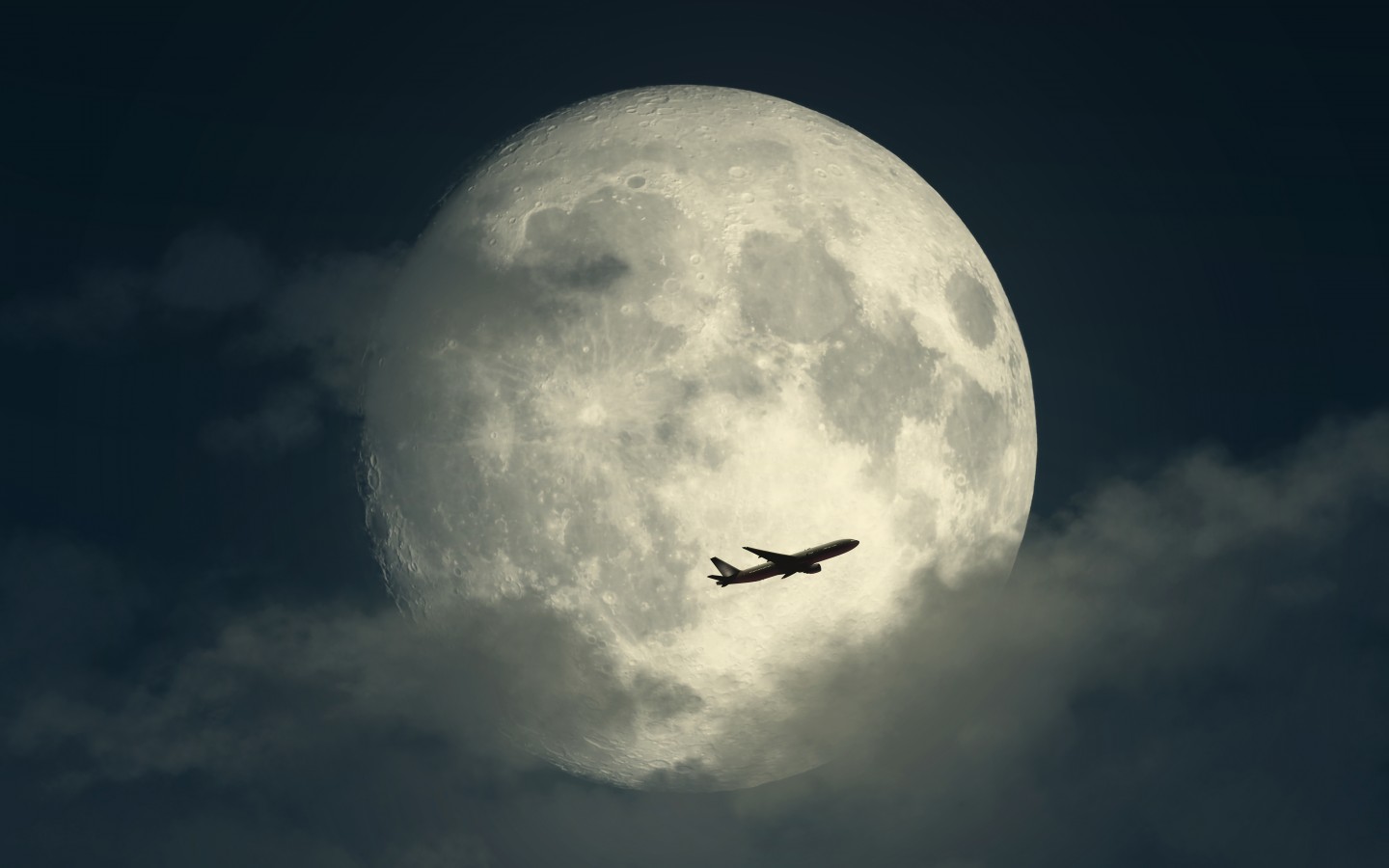 Full Moon Airplane Clouds Night Sky Wallpaper - 1440x900