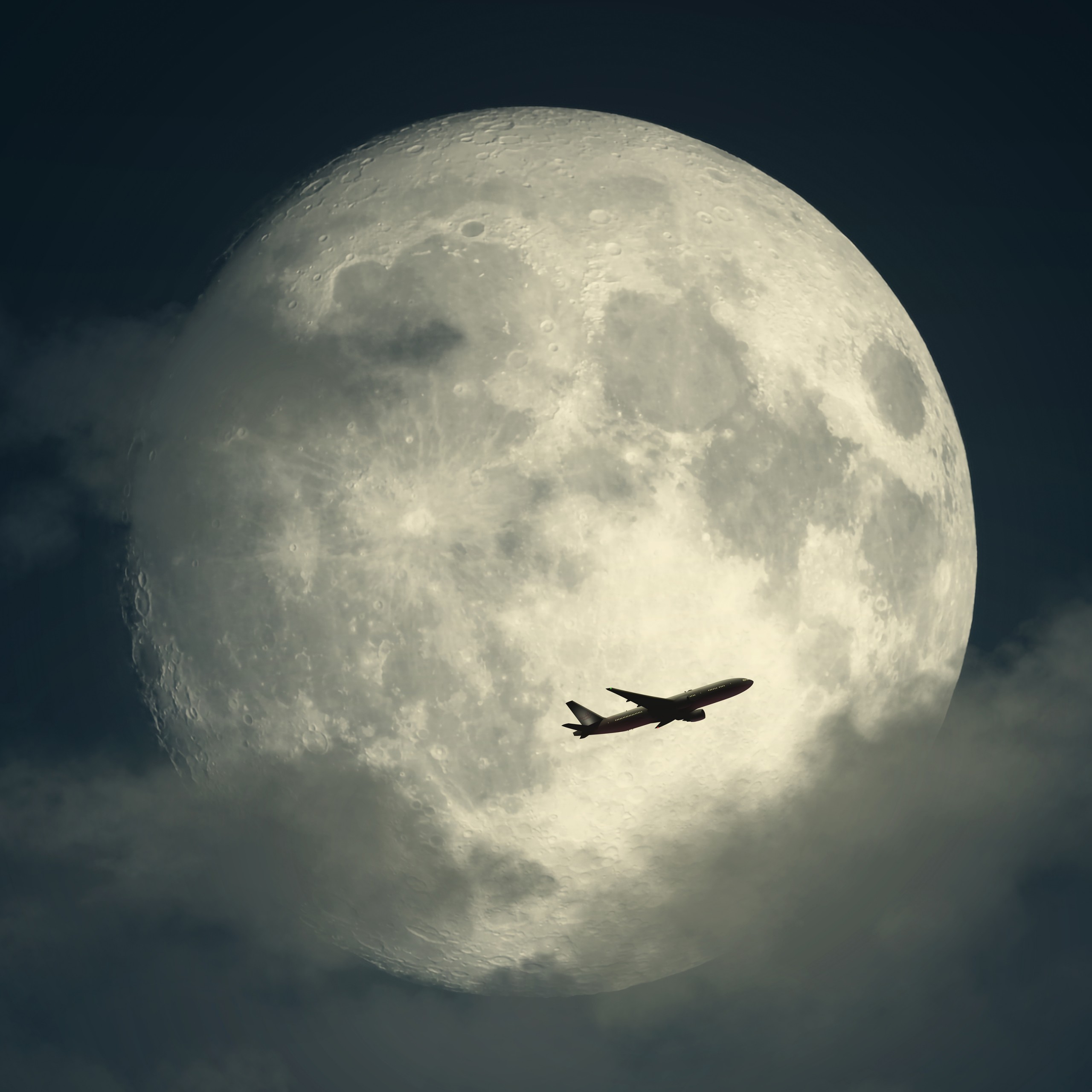 Full Moon Airplane Clouds Night Sky Wallpaper - 2560x2560