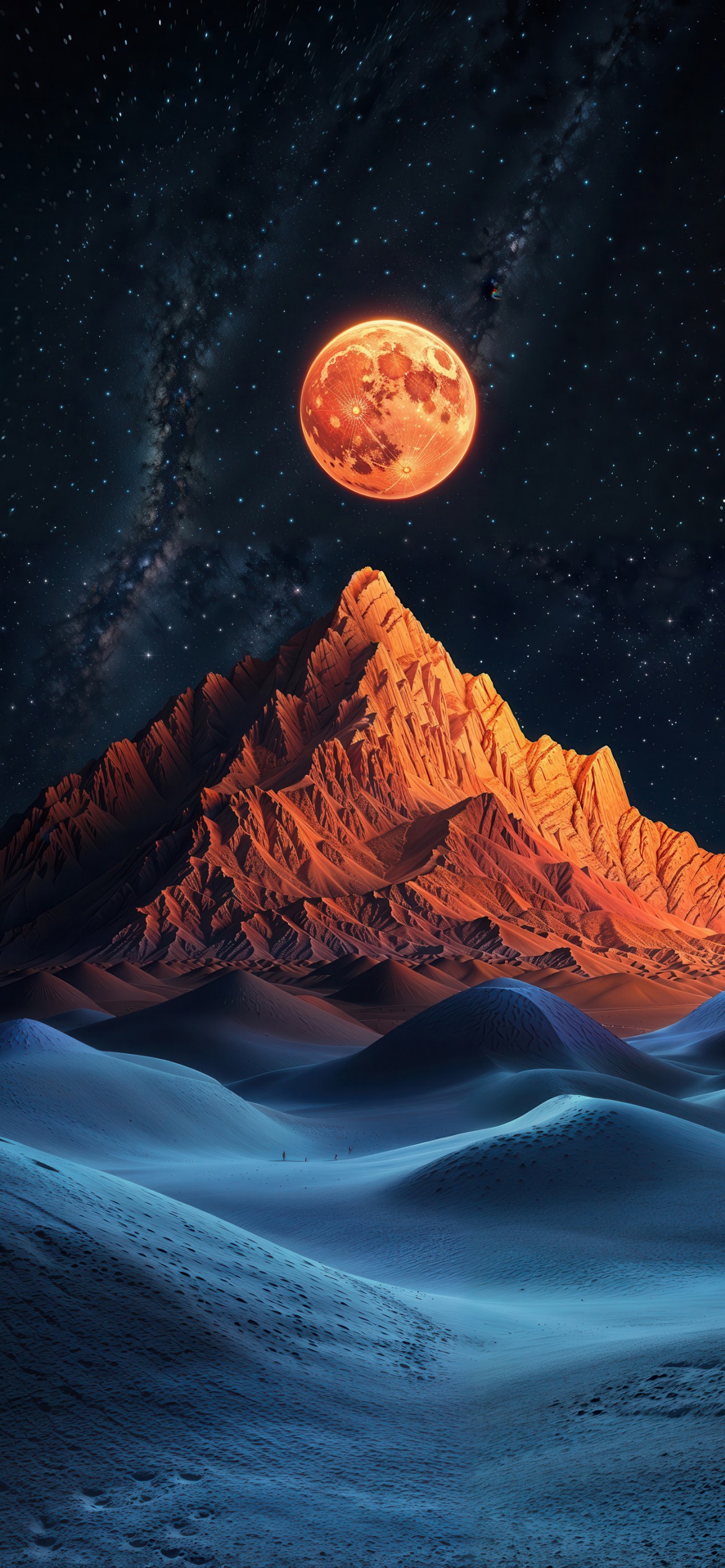 Full Moon Fire Mountain Ai Art Wallpaper - 1170x2532