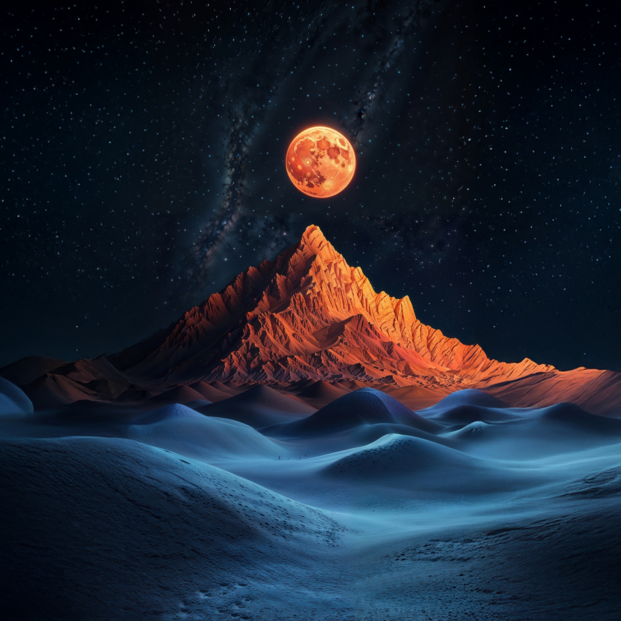 Full Moon Fire Mountain Ai Art Wallpaper - 2560x2560