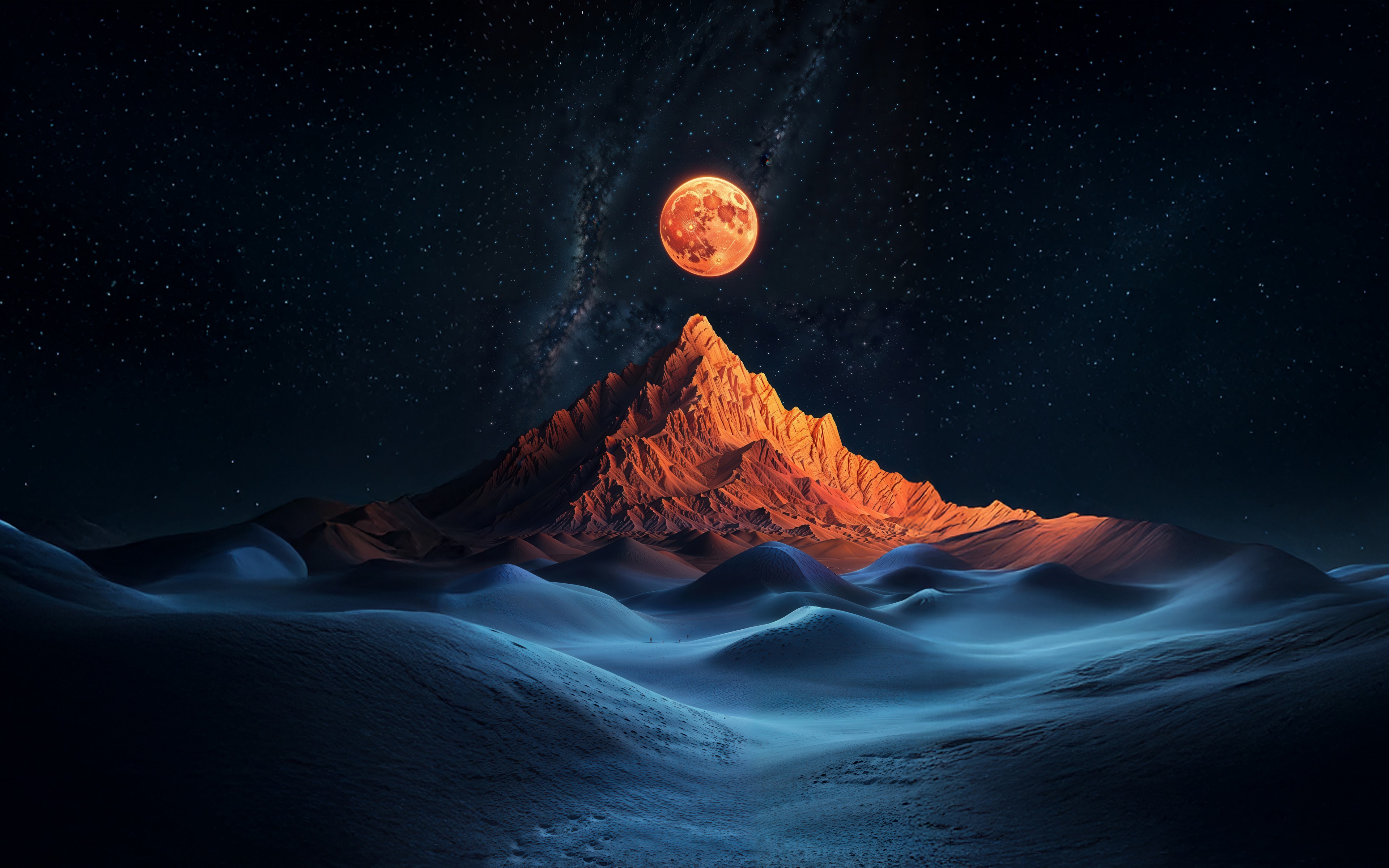 Full Moon Fire Mountain Ai Art Wallpaper - 3840x2400
