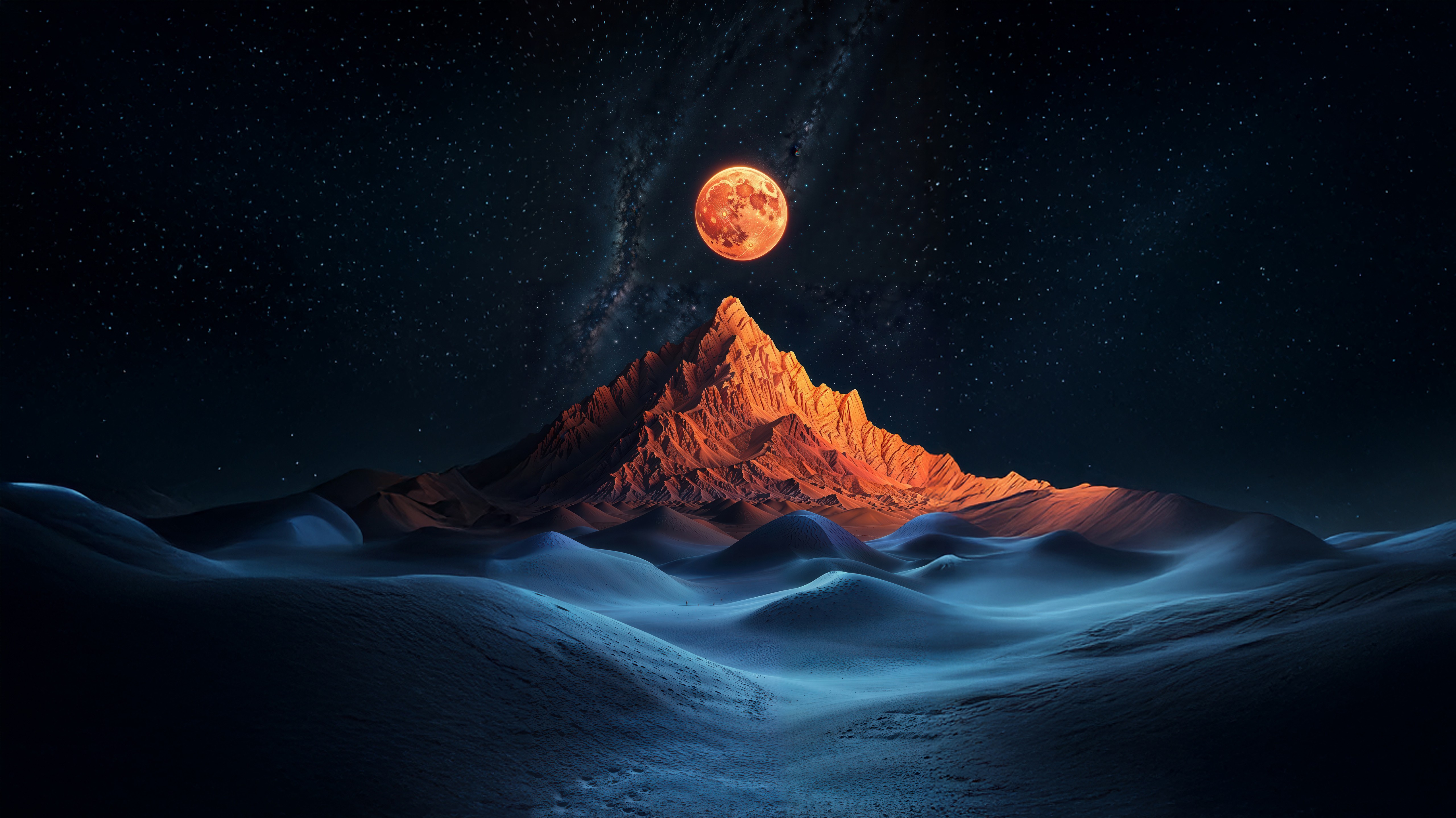 Full Moon Fire Mountain Ai Art Wallpaper - 5120x2880