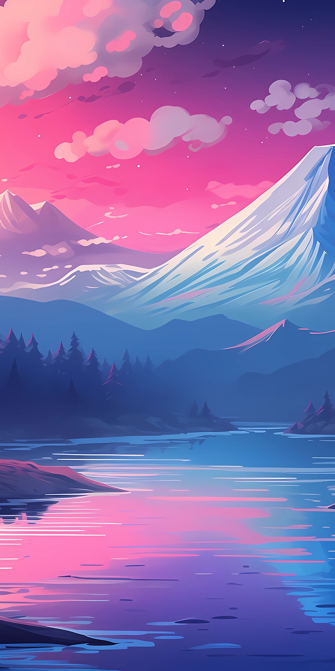 Full Moon Mountains Pink Clouds Art Wallpaper - 1080x2160