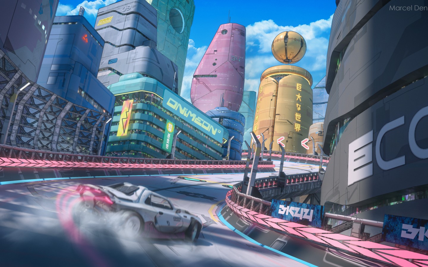 Futuristic Car Drift Skyscraper Digital Art Wallpaper - 1440x900