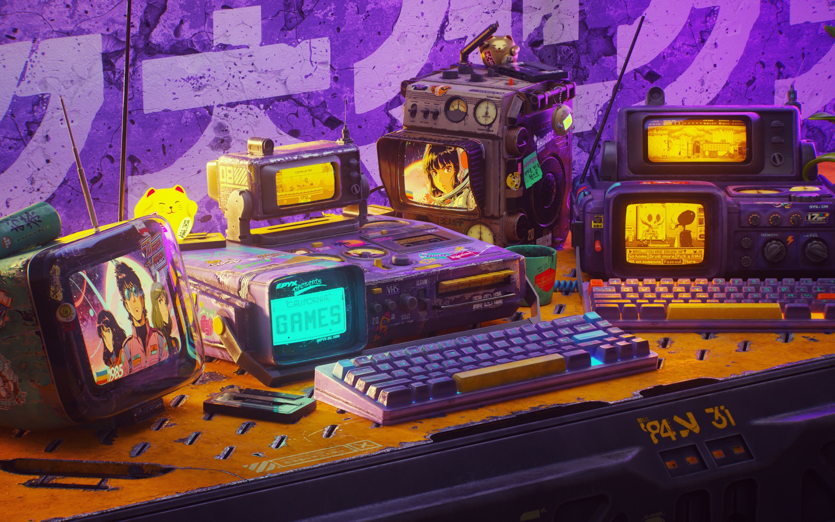 Futuristic Retro Gaming Desk Art Wallpaper - 2880x1800