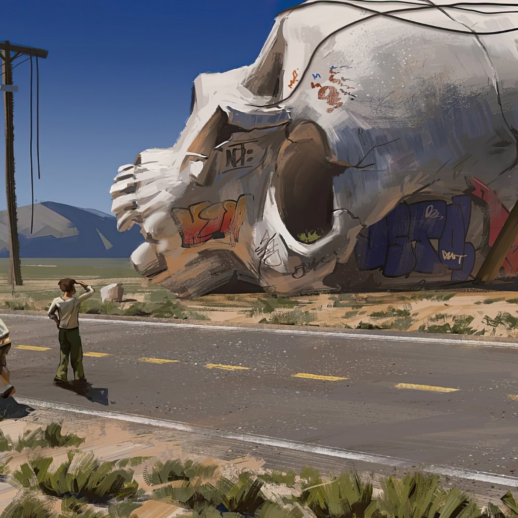 Giant Skull Graffiti Road Art Wallpaper - 1024x1024