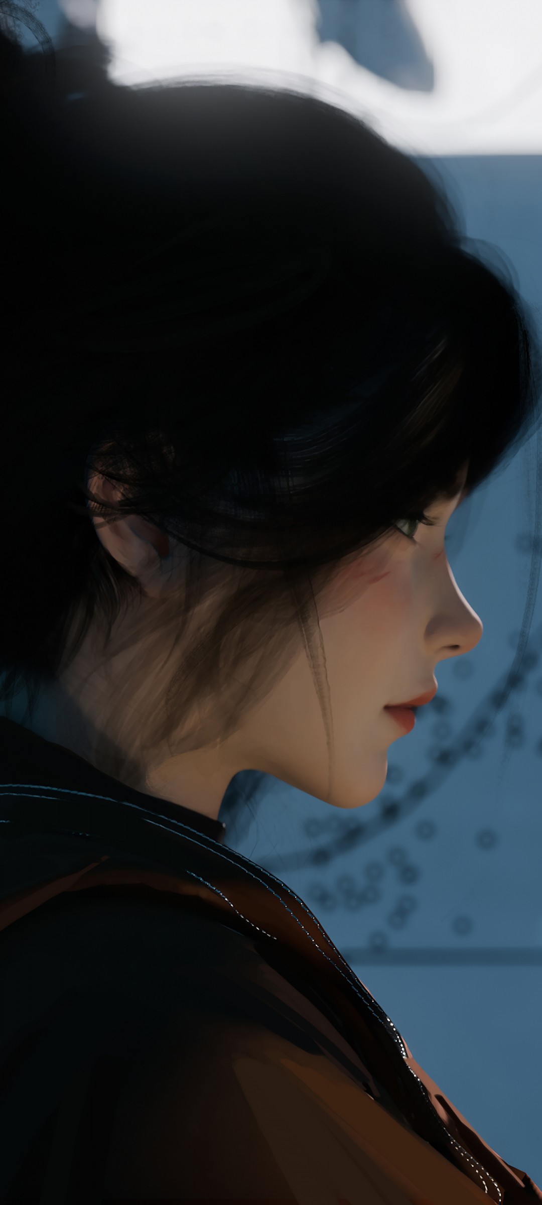 Girl Black Hair Blue Background Art Wallpaper - 1080x2400