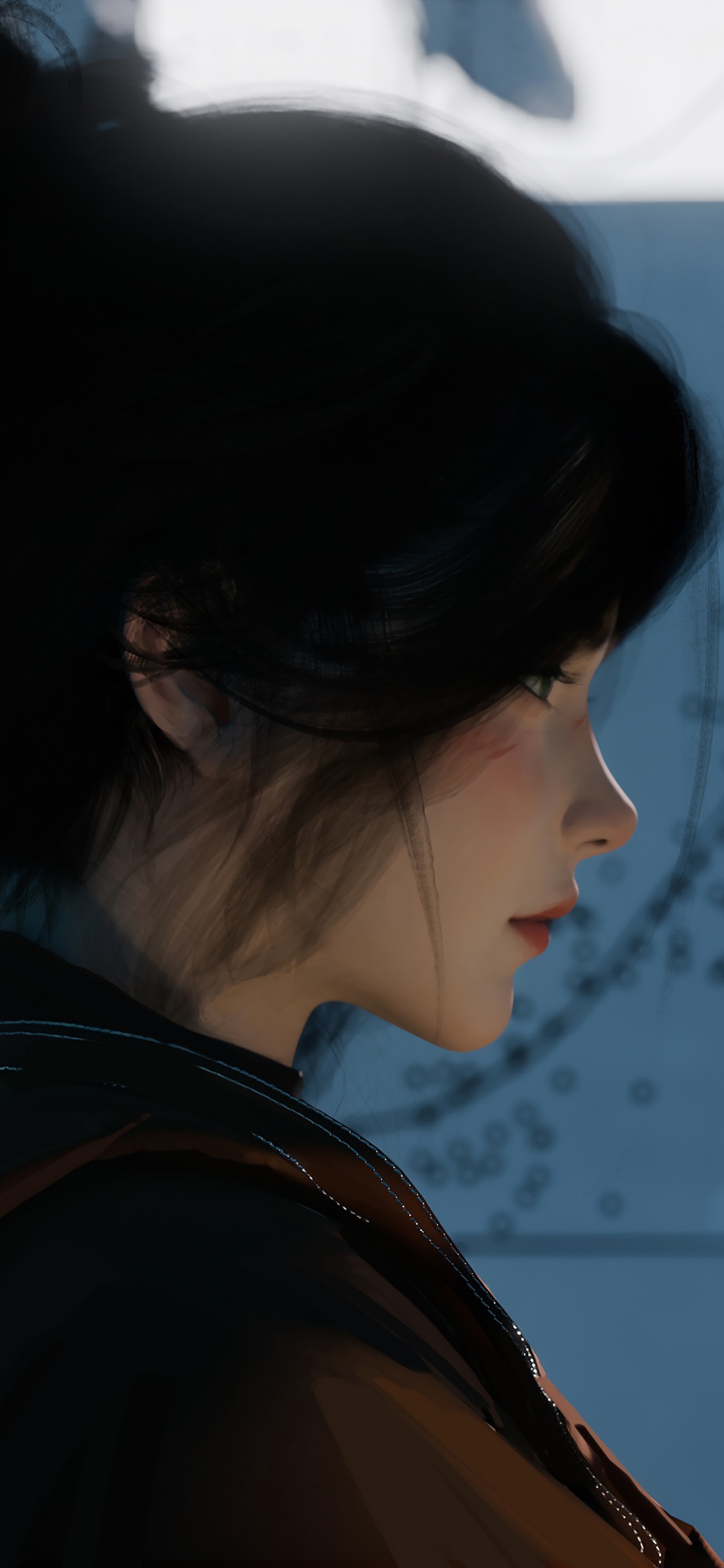 Girl Black Hair Blue Background Art Wallpaper - 1242x2688