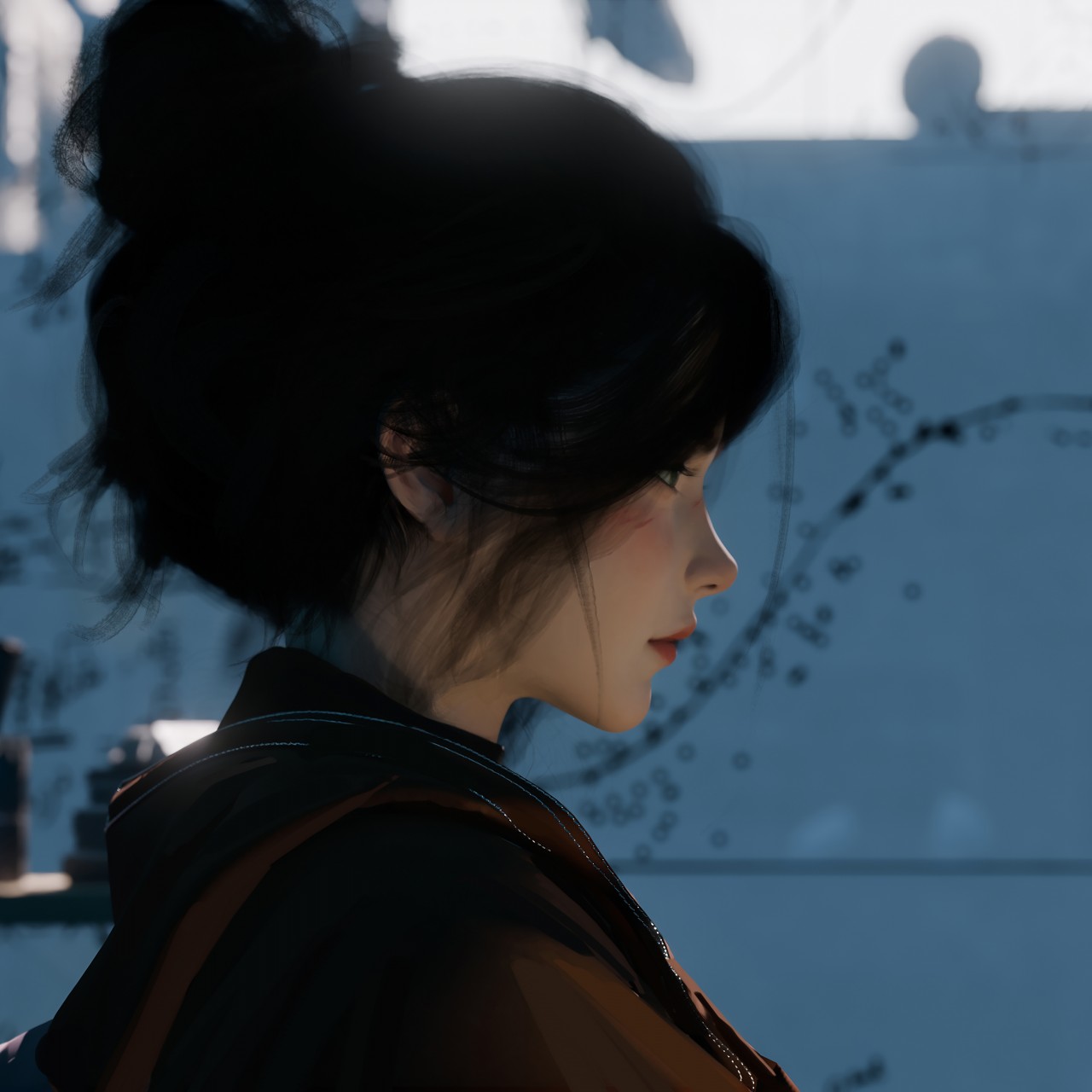 Girl Black Hair Blue Background Art Wallpaper - 1280x1280