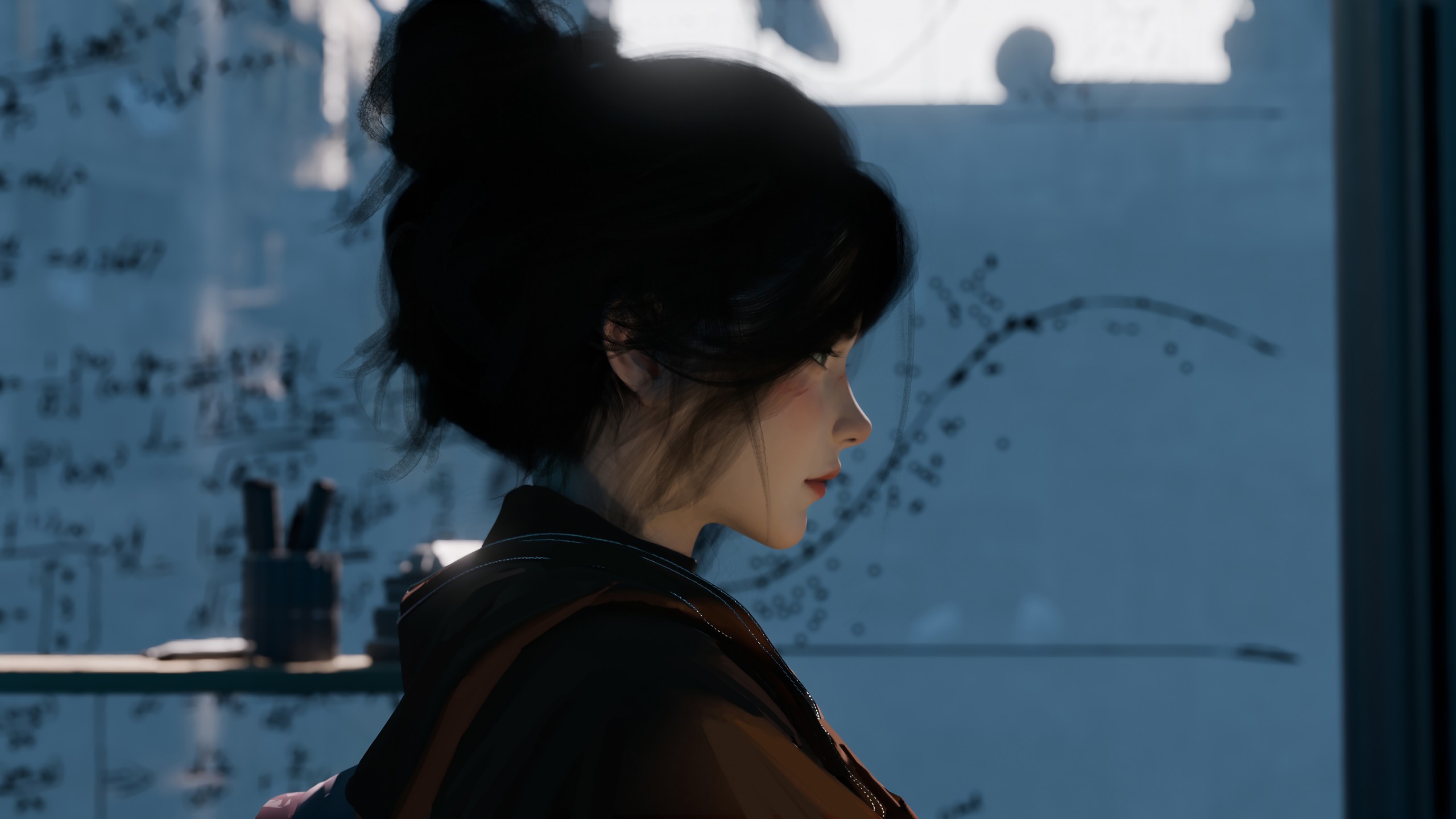 Girl Black Hair Blue Background Art Wallpaper - 2560x1440