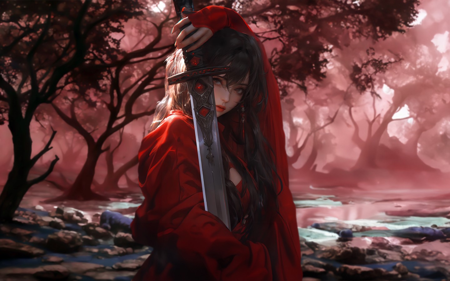 Girl Samurai Sword Red Kimono Wallpaper - 1440x900
