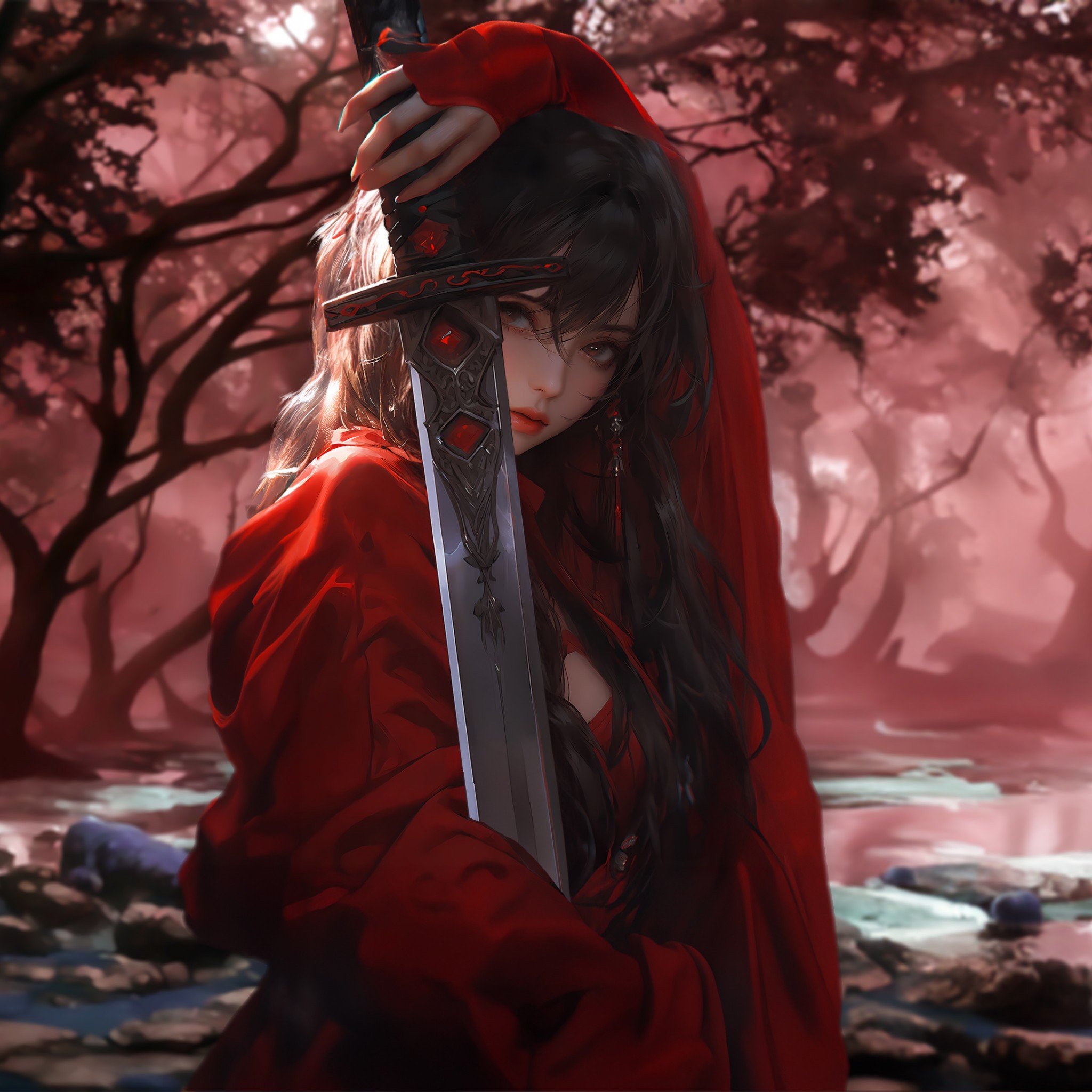 Girl Samurai Sword Red Kimono Wallpaper - 2048x2048