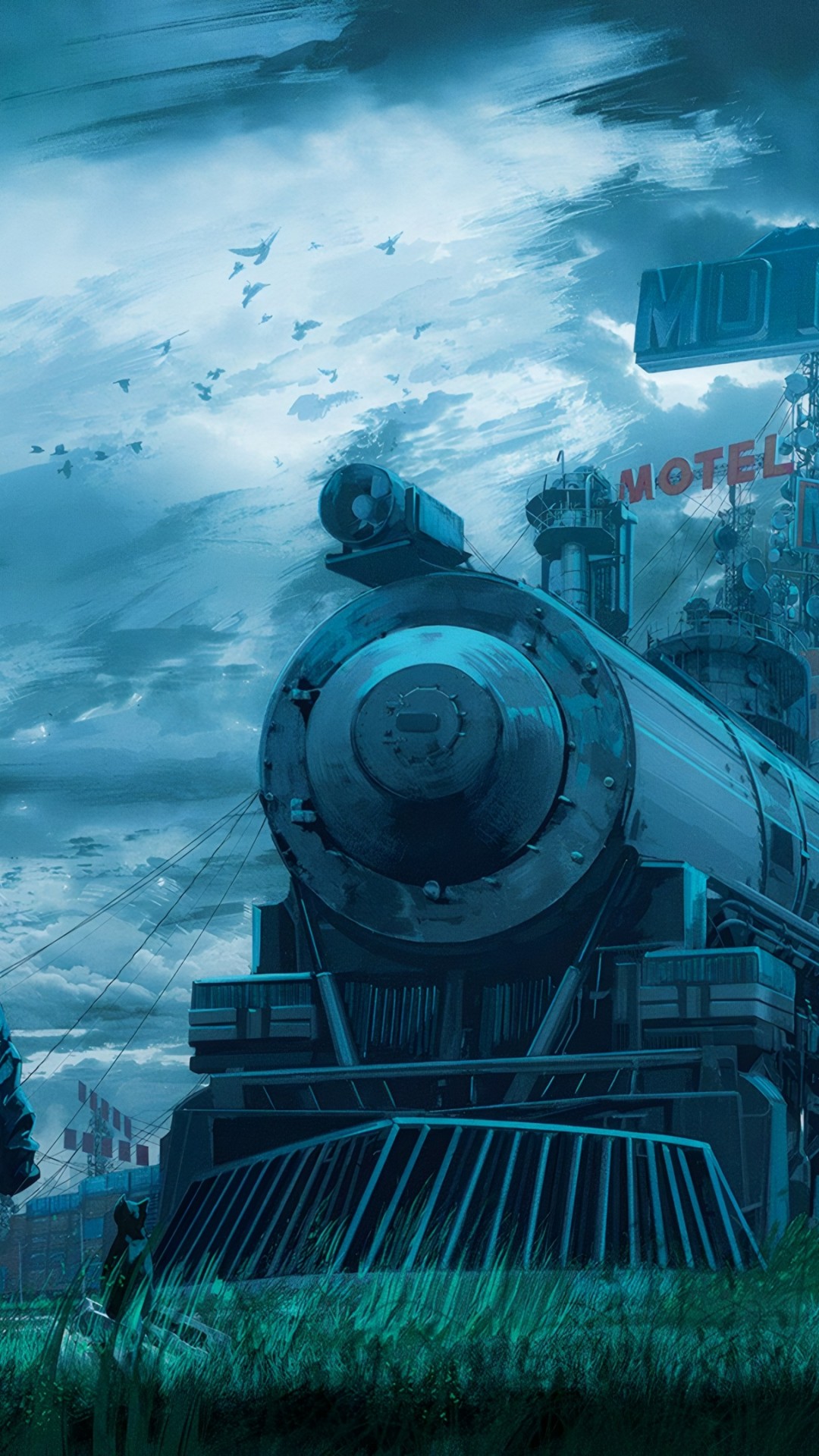 Girl Train Motel Grass Artwork Wallpaper - 1080x1920