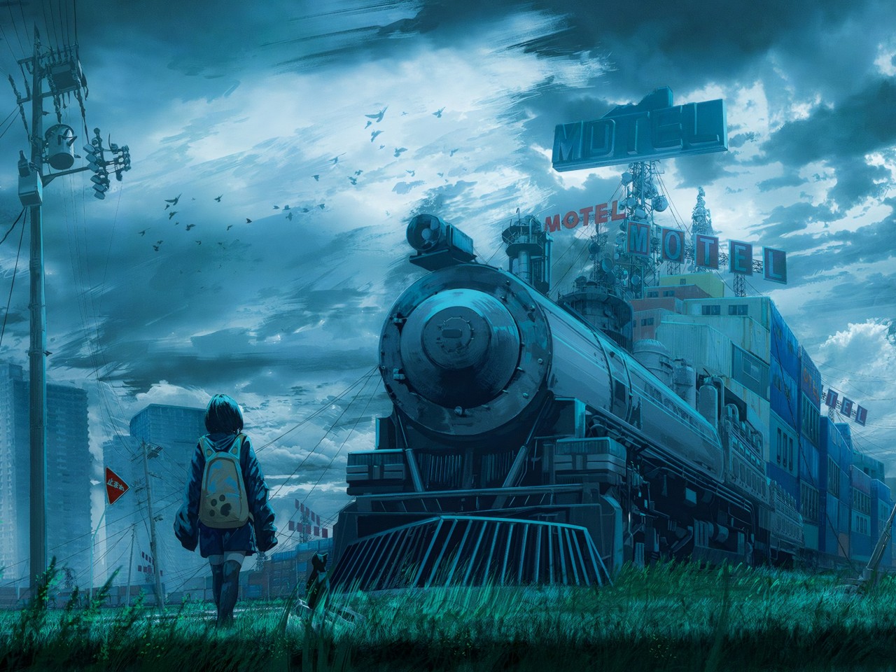 Girl Train Motel Grass Artwork Wallpaper - 1280x960