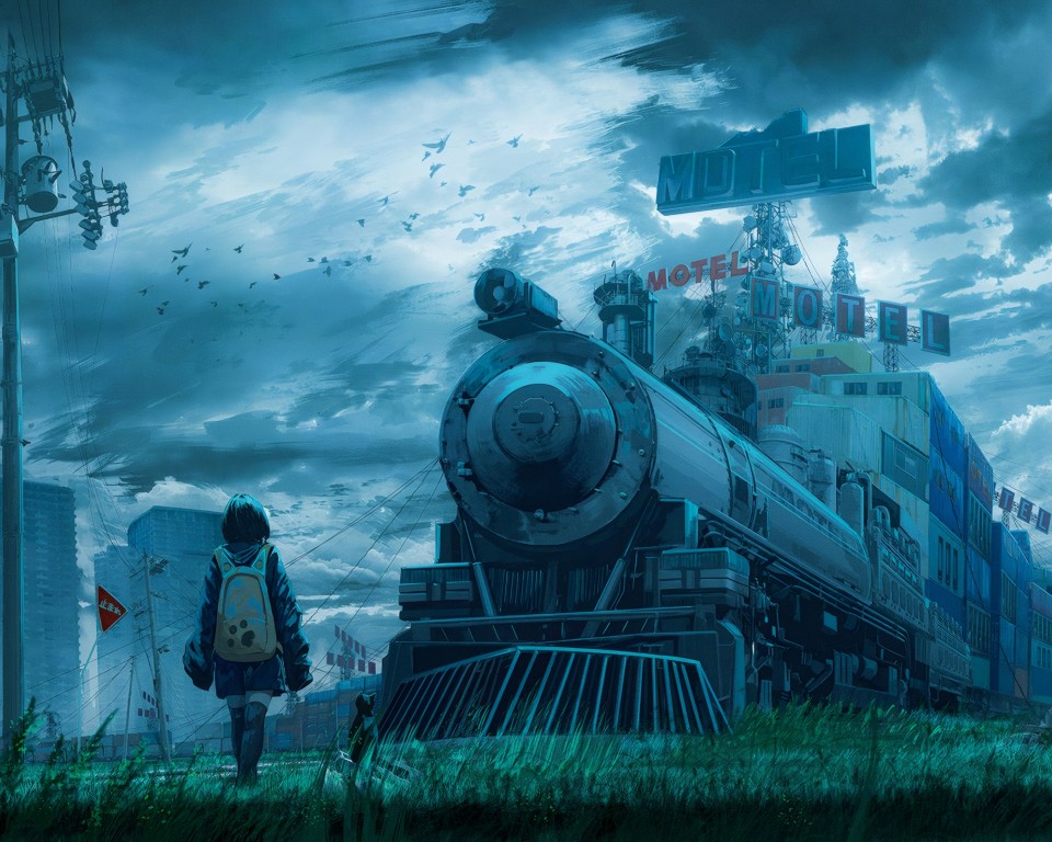 Girl Train Motel Grass Artwork Wallpaper - 960x768