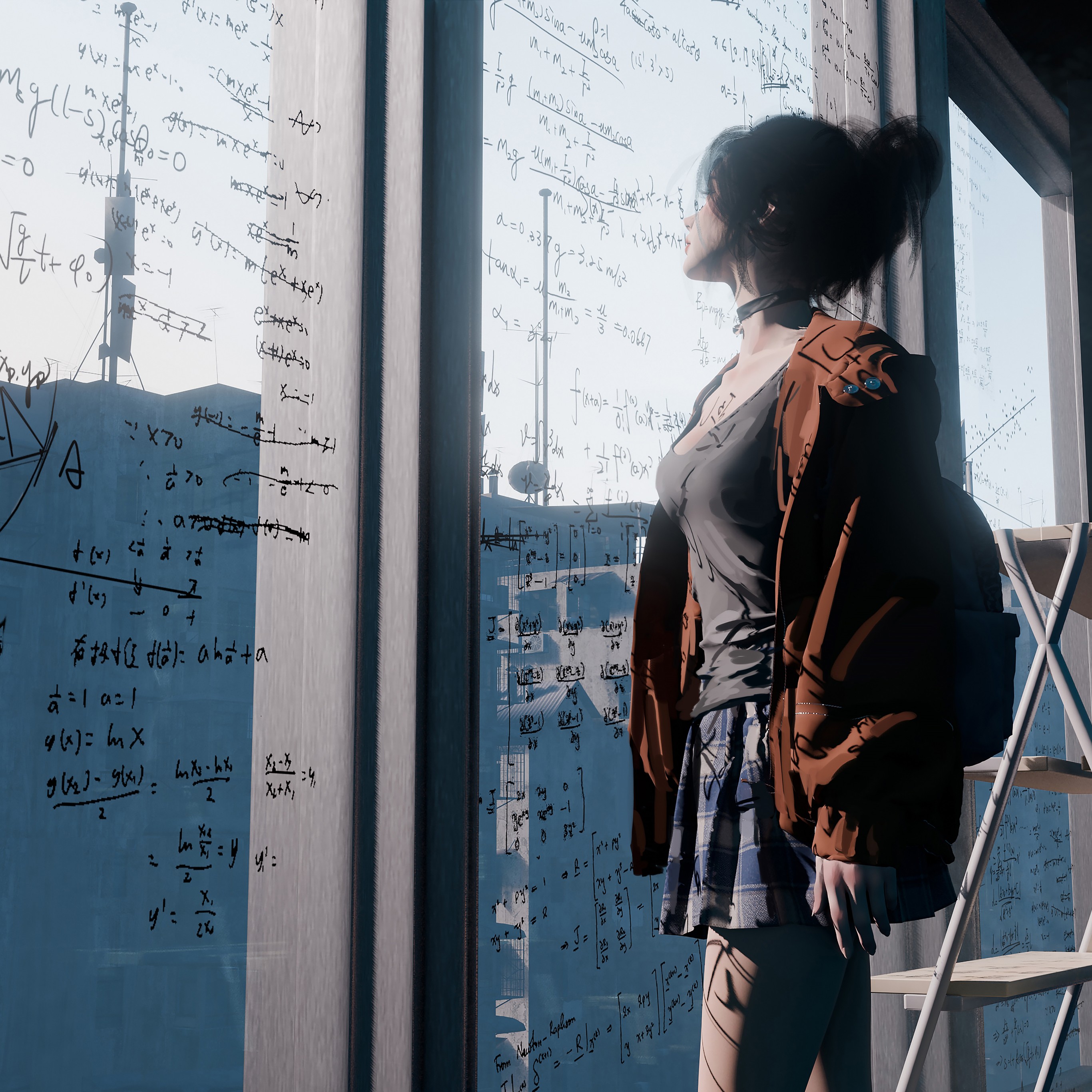 Girl Window Math Equation Art Wallpaper - 2732x2732