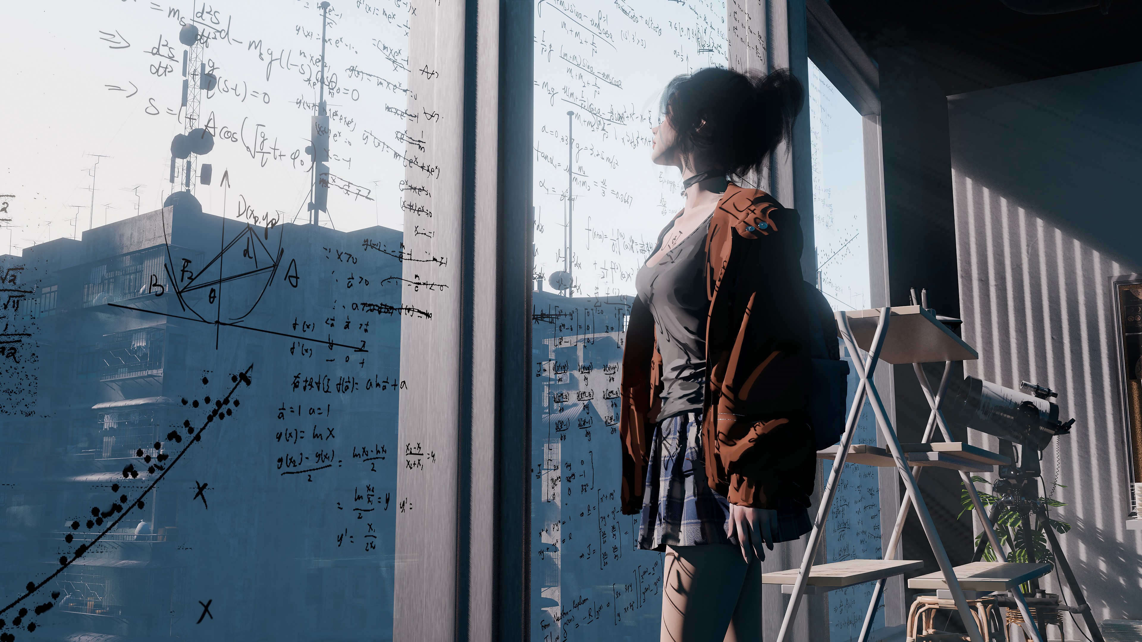 Girl Window Math Equation Art Wallpaper - 3840x2160