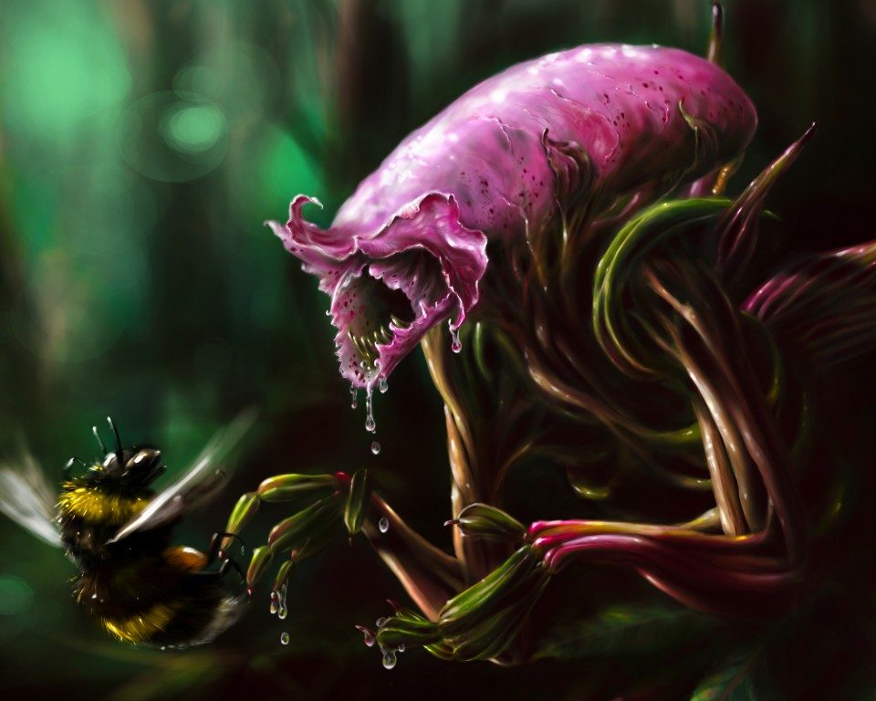 Glandulifera Alien Flower Art Wallpaper - 960x768